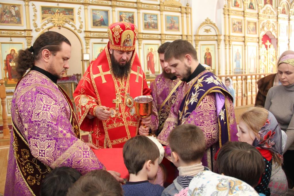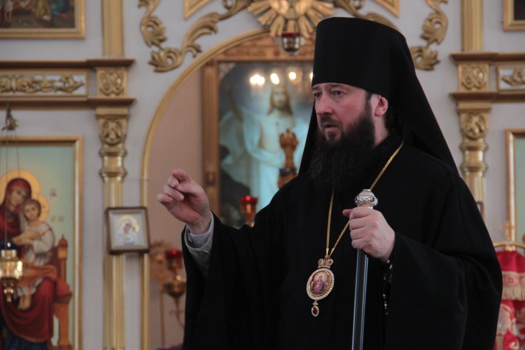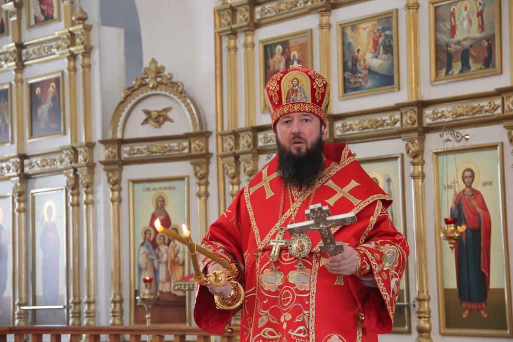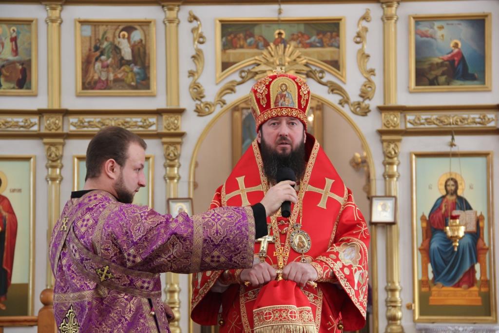 В завершение праздничного молебна епископ Амфилохий поздравил причастников с принятием Святых Христовых Таин и обратился к народу Божию со словами проповеди.