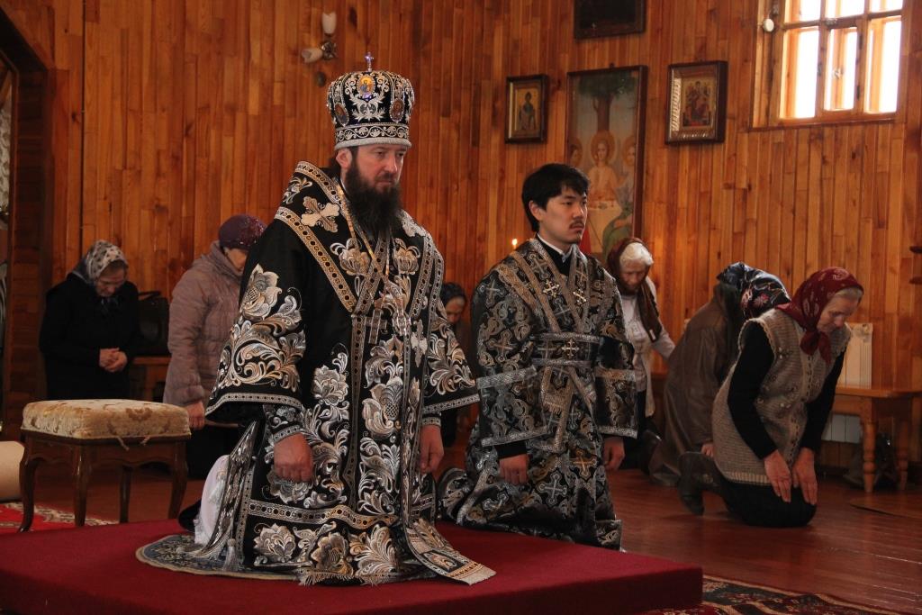 Управляющий Усть-Каменогорской и Семипалатинской епархией Преосвященнейший епископ Амфилохий возглавил служение Литургии Преждеосвященных Даров святителя Григория Двоеслова в Свято-Покровском храме города Усть-Каменогорска. Владыке сослужили: архимандрит Спиридон (Теплухин), благочинный Усть-Каменогорского церковного округа, настоятель храма иерей Алексий Анищенко, иеромонах Силуан (Магилев), иерей Роман Подрезов, протодиаконы Георгий Засыпкин и Андрей Дудник, диакон Александр Якушев.