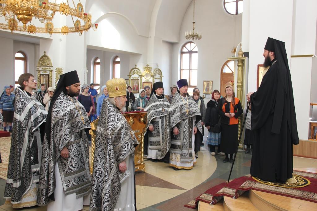 Управляющий Усть-Каменогорской и Семипалатинской епархией Преосвященнейший епископ Амфилохий возглавил служение Литургии Преждеосвященных Даров святителя Григория Двоеслова в кафедральном соборе во имя святого апостола Андрея Первозванного города Усть-Каменогорска. Владыке епископу сослужили: архимандрит Спиридон (Теплухин), иерей Алексий Клепиков, иеромонах Севастиан (Андрбщенко), иеромонах Силуан (Магилев), иерей Константин Дьяков, протодиаконы Георгий Засыпкин и Андрей Дудник, иеродиакон Мефодий (Шевчук).