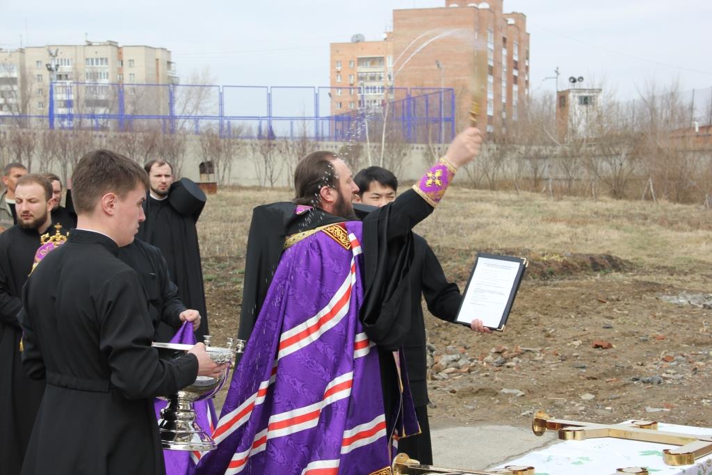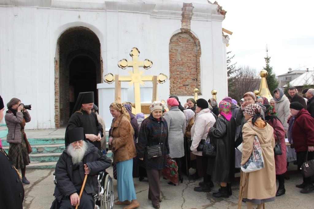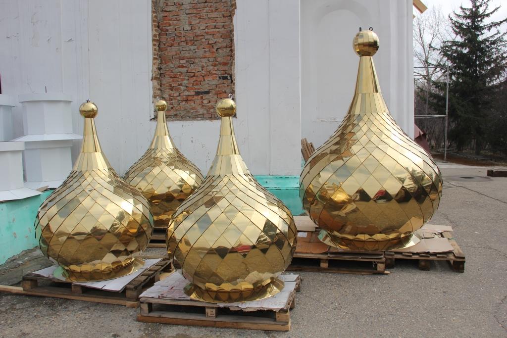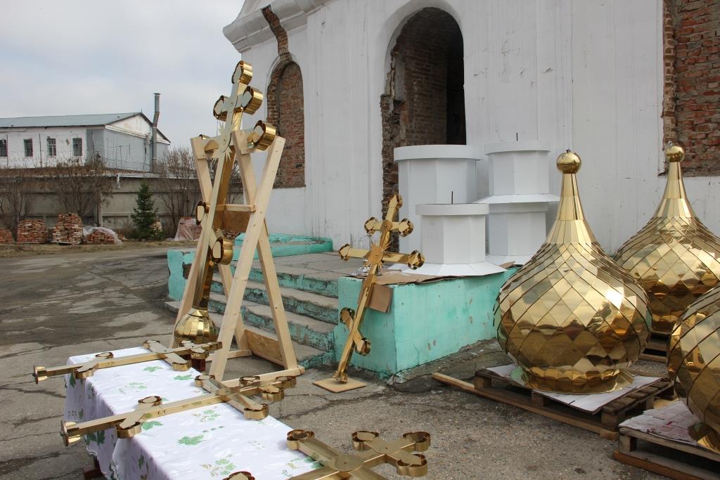 После проповеди Архипастырь с духовенством, при большом стечении молящихся, совершил чин освящения новых куполов и крестов для восстанавливаемого Свято-Троицкого крепостного храма. В ближайшее время ожидается прибытие в наш город и колоколов, которые вместе с новоосвященными куполами, украсят, некогда порушенный и поруганный храм-мученик, а ныне восстающую из руин святыню православного Прииртышья.