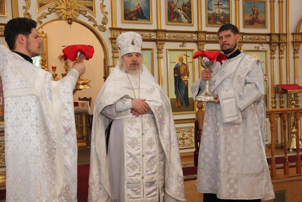 Преосвященнейший Амфилохий, епископ Усть-Каменогорский и Семипалатинский, совершил Божественную Литургию святителя Иоанна Златоуста в Свято-Андреевском кафедральном соборе города Усть-Каменогорска. Архипастырю сослужили: архимандрит Спиридон (Теплухин), иеромонах Севастиан (Андрющенко), иеромонах Силуан (Магилев), протодиаконы Георгий Засыпкин и Андрей Дудник, иеродиакон Мефодий (Шевчук), иеродиакон Мануил (Чабанов).