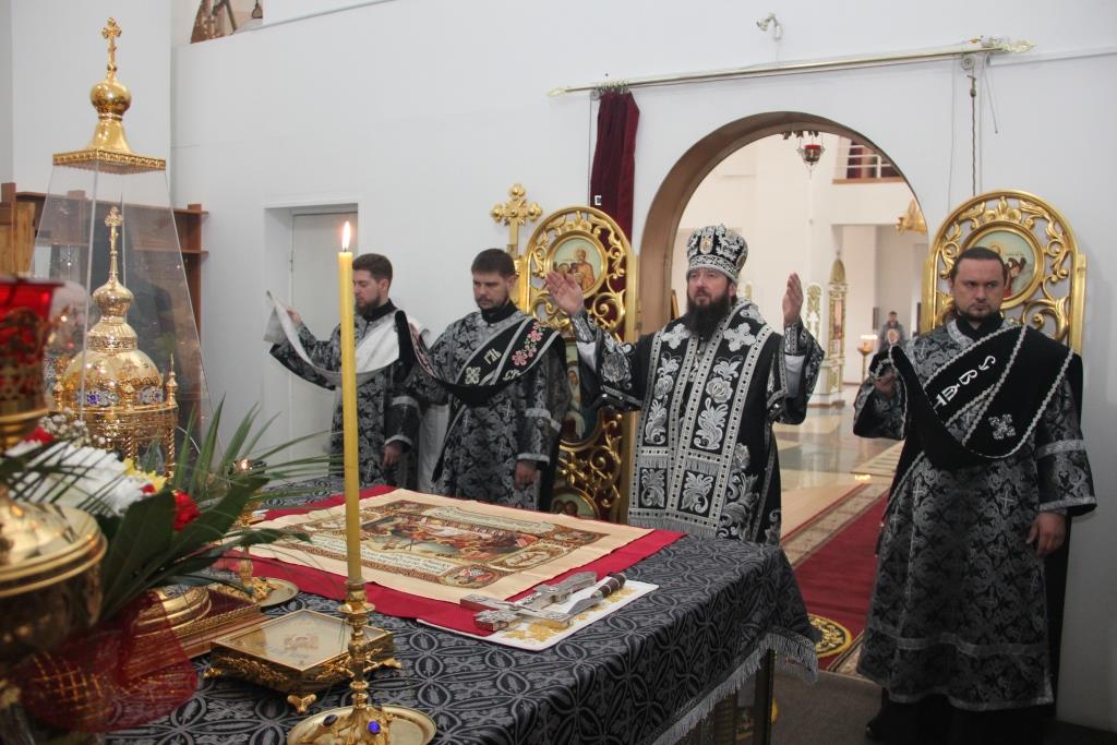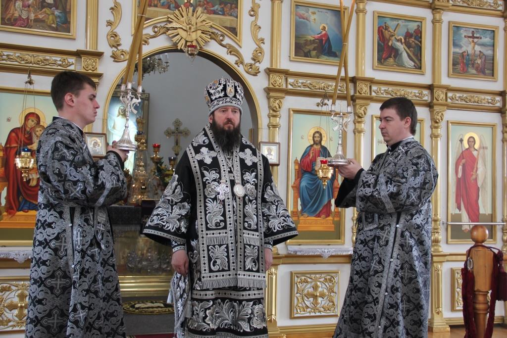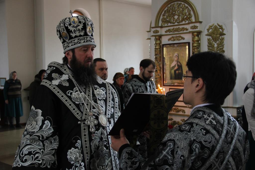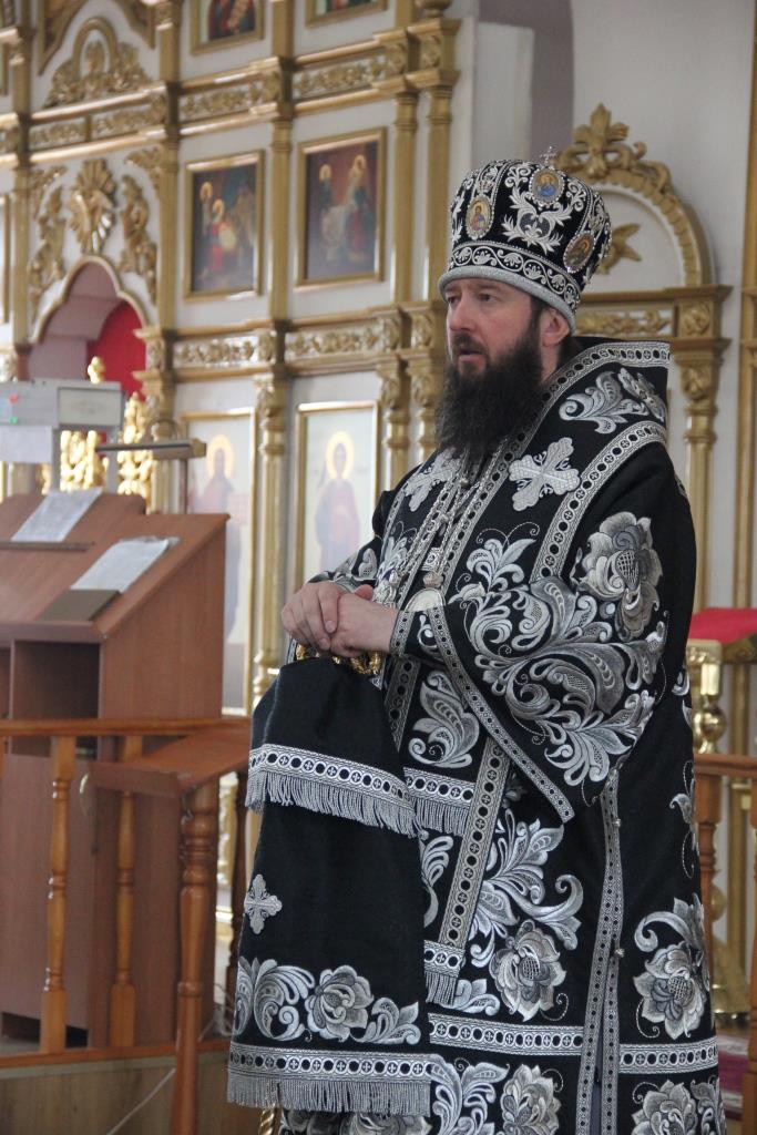 По окончании богослужения Владыка епископ обратился к прихожанам со словами проповеди, в которой рассказал о духовном смысле наступившей Страстной седмицы.