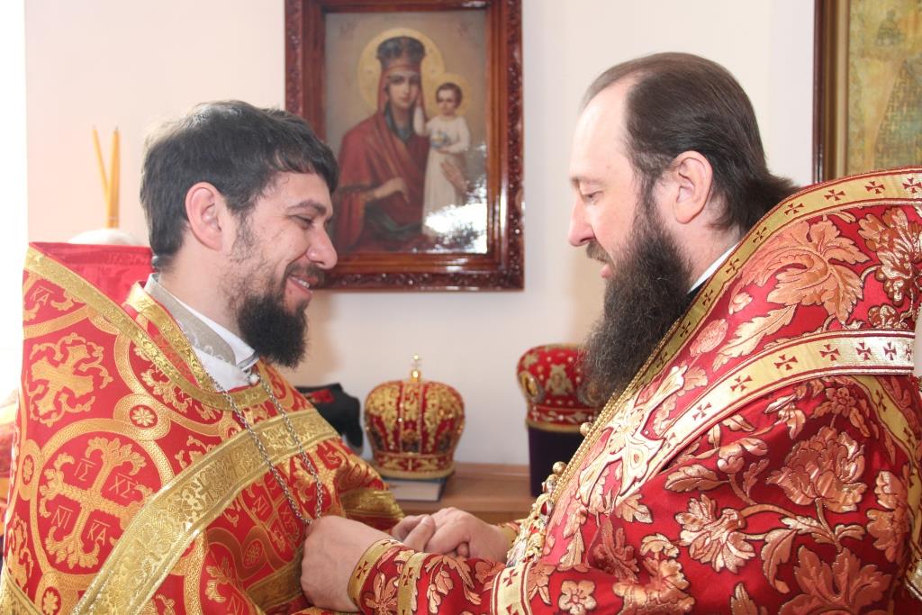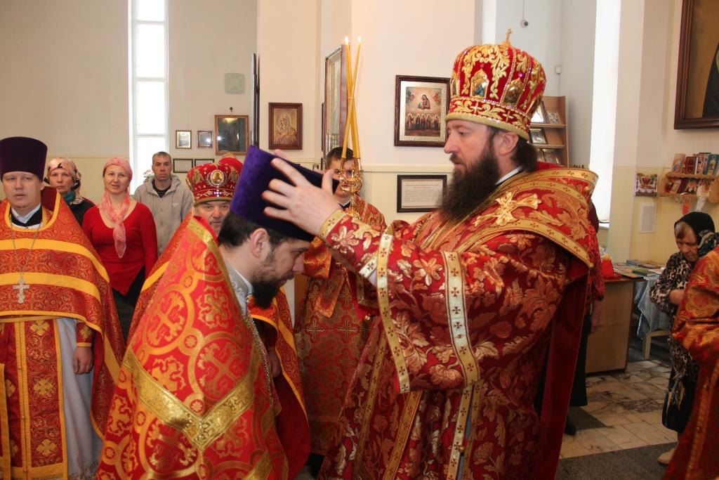 На малом входе Божественной Литургии епископ Амфилохий к празднику Святой Пасхи наградил настоятеля храма иерея Вячеслава Гутова правом ношения камилавки.