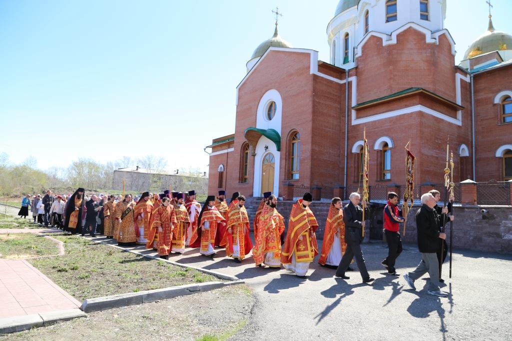 По заамвонной молитве состоялся крестный ход пасхальным чином вокруг кафедрального собора.