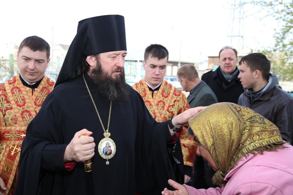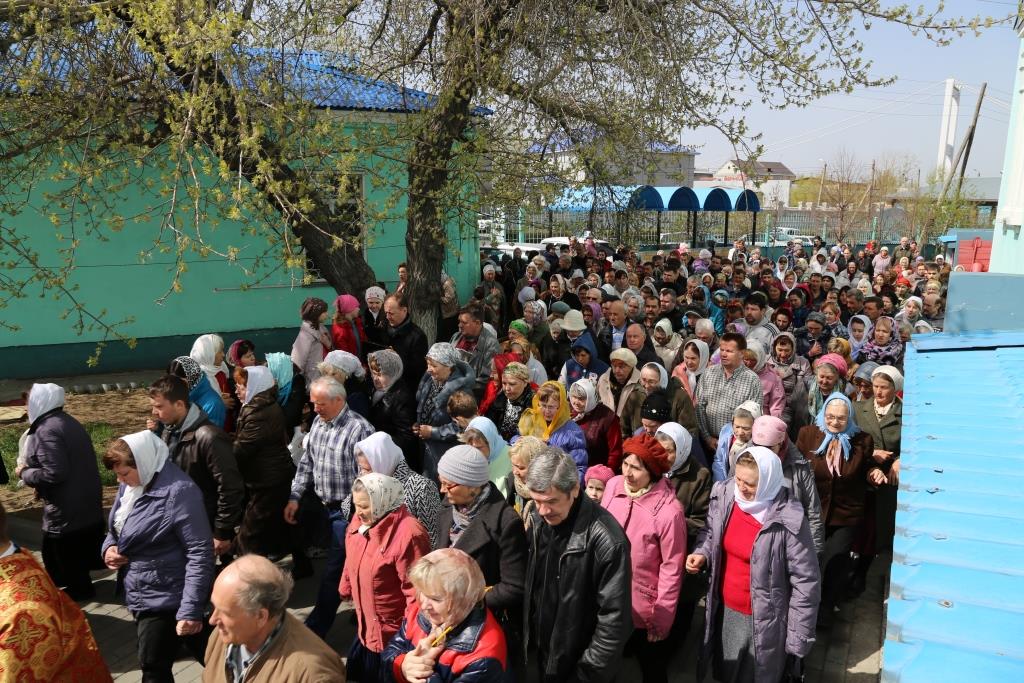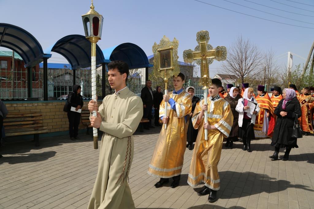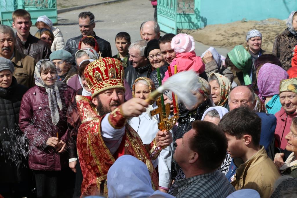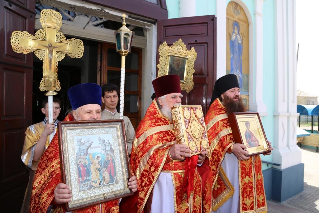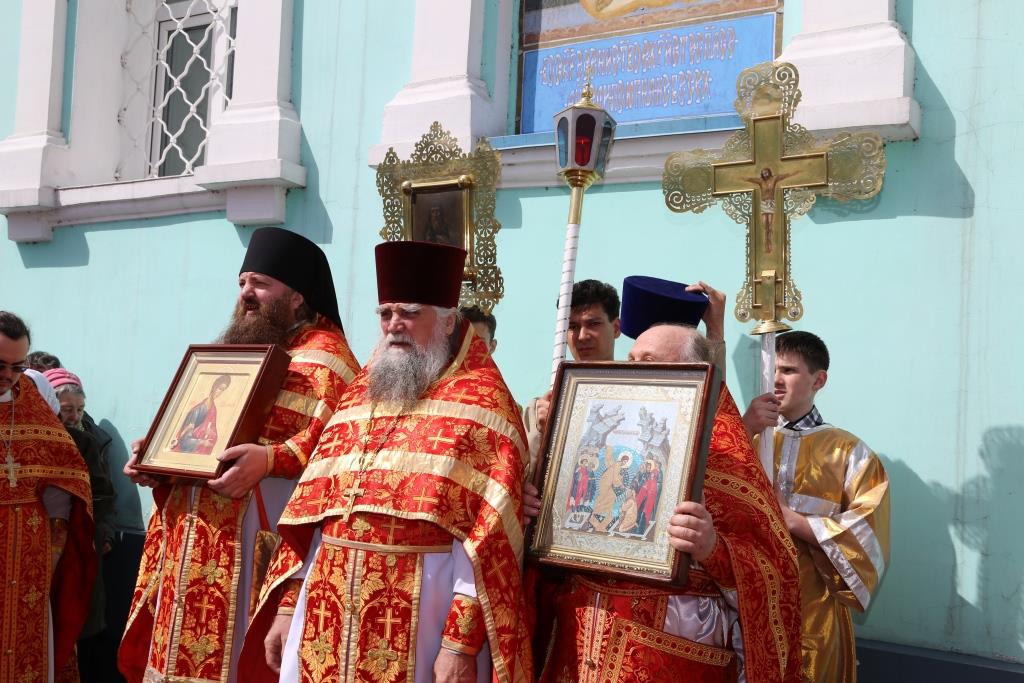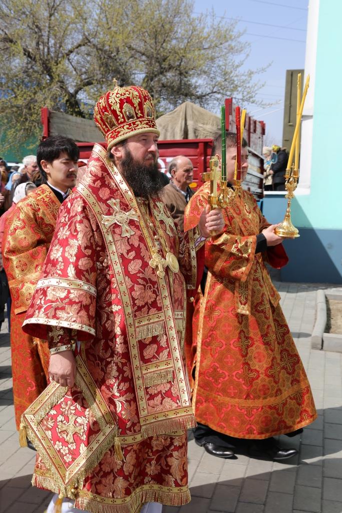 По заамвонной молитве народ Божий, во главе с владыкой епископом, с пением пасхальных стихир, совершили крестный ход вокруг Спасо-Воскресенского собора.