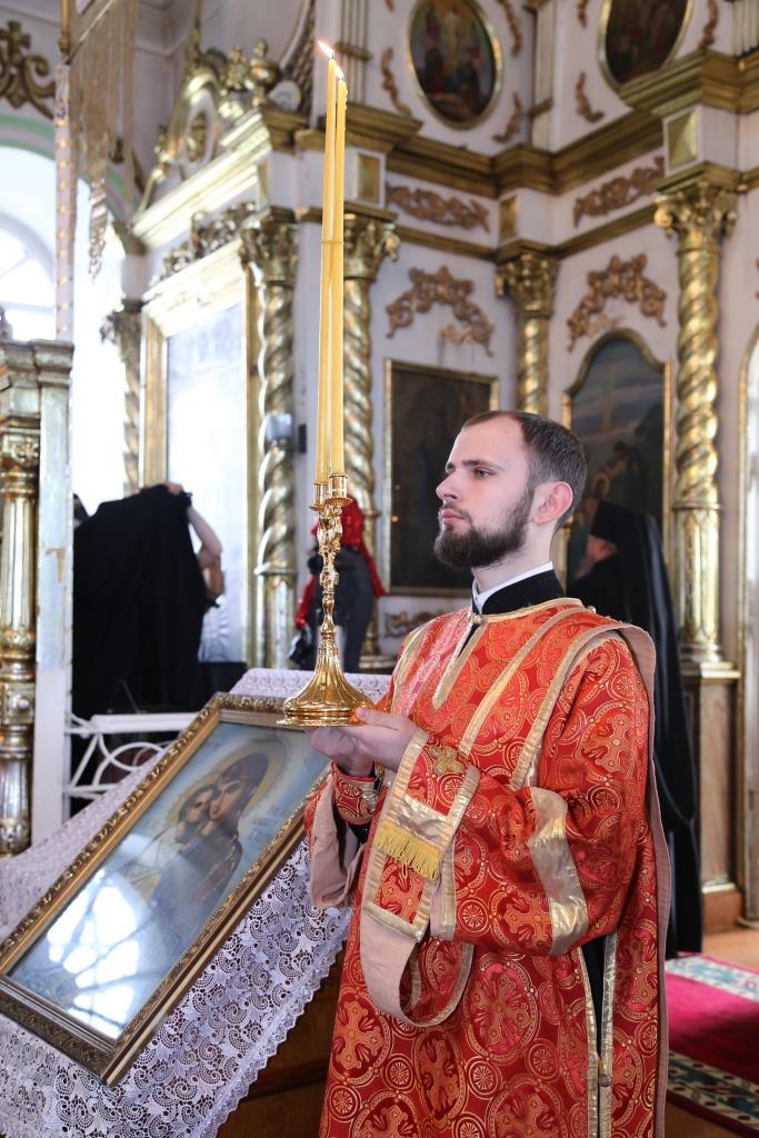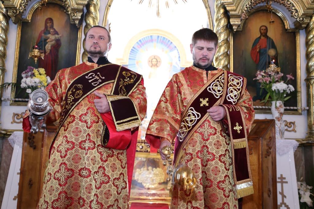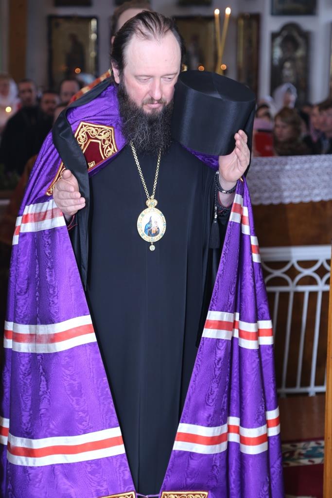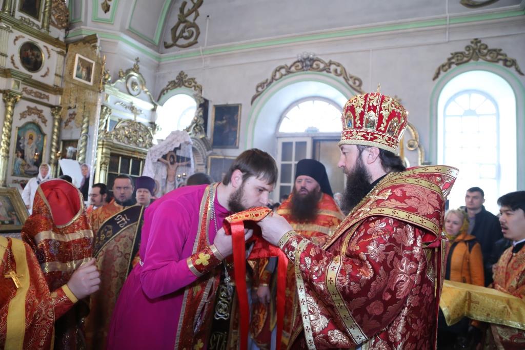 За богослужением епископ Амфилохий к празднику Святой Пасхи наградил клирика Воскресенского собора иерея Евгения Потылицына правом ношения набедренника.