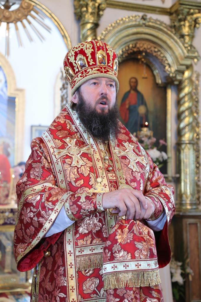 В завершение праздничного богослужения Преосвященный Владыка приветствовал духовенство и многочисленных прихожан вечно живыми словами апостольского благовестия «Христос воскресе!», после чего обратился к молящимся со словами Архипастырской проповеди.