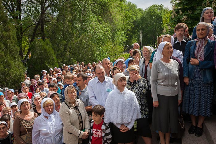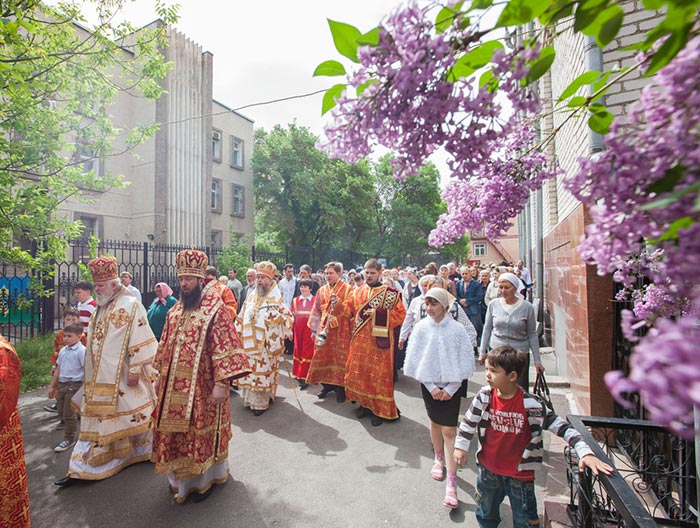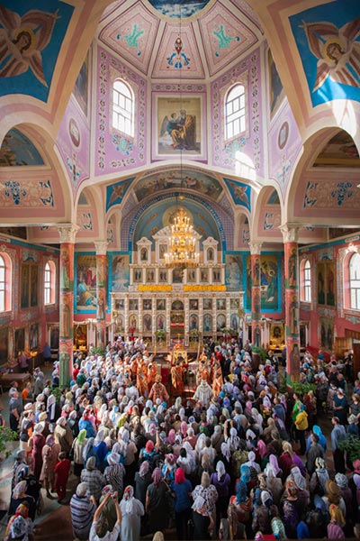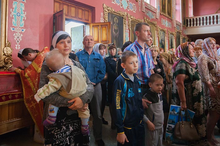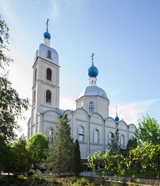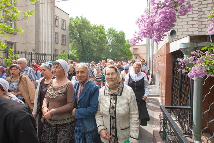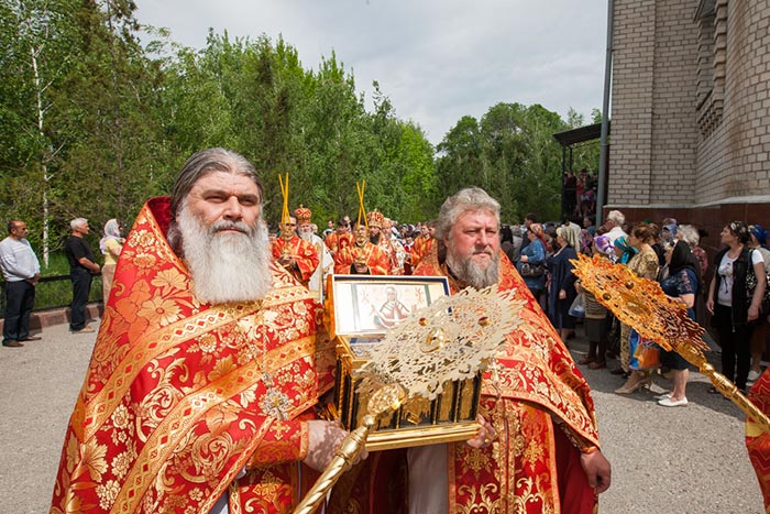 За богослужением молились православные жители города и паломники из населенных пунктов Жамбылской области. Величественный собор не вместил многочисленных верующих, более тысячи человек молились на улице.