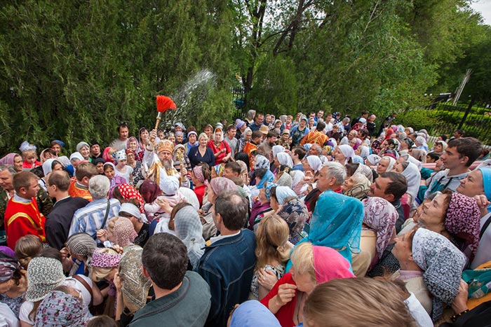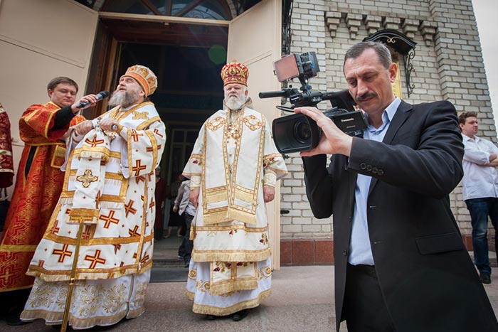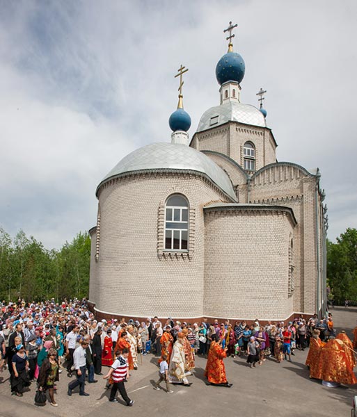 Литургия завершилась крестным ходом - при пении пасхальных тропарей и стихир святыни были обнесены вокруг храма. Перед входом в собор митрополит Александр прочитал молитву Пресвятой Богородице и похристосовался с народом на разных языках и наречиях. Архипастыри осенили ковчегом с Поясом Приснодевы Марии собравшихся, после чего Глава Митрополичьего округа произнес проповедь и окропил молящихся святой водой.