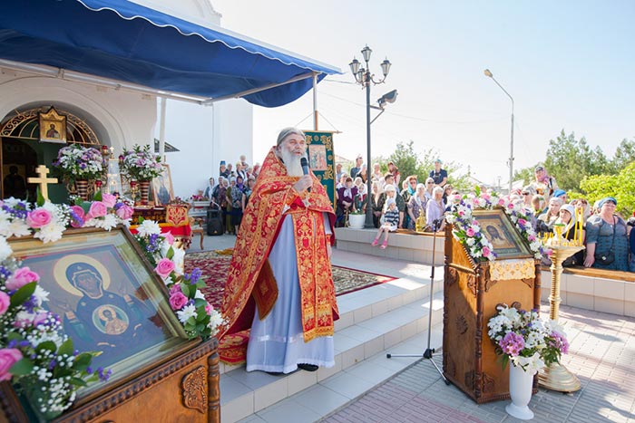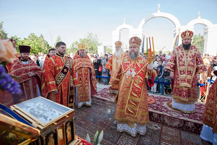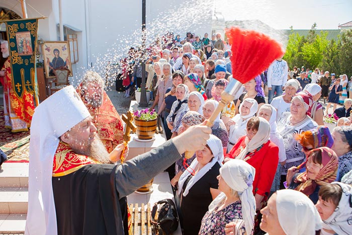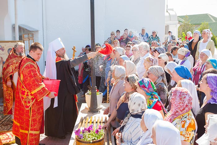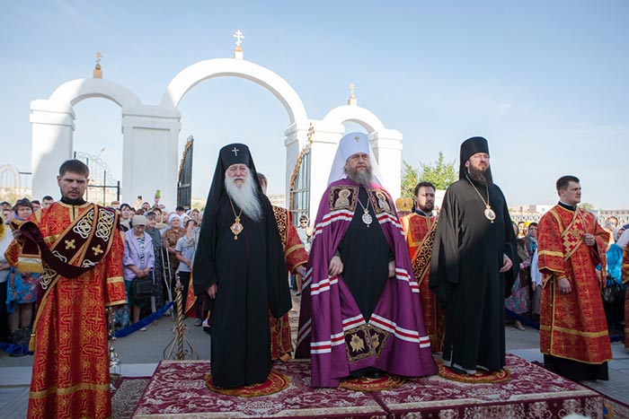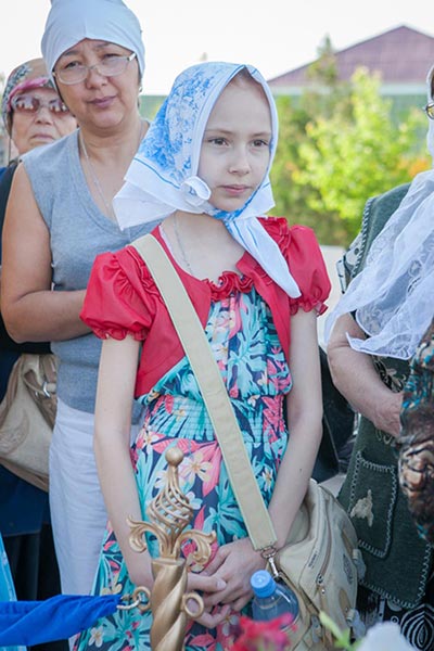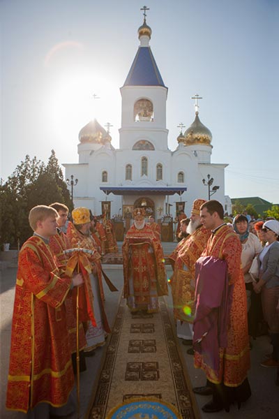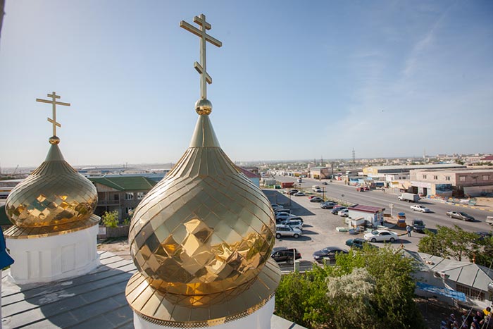 Литургия завершилась пасхальным славлением и молитвой Приснодеве Марии. Владыка митрополит поздравил священнослужителей, прихожан и паломников с радостью принесения в Каспийскую столицу Казахстана Пояса Царицы Небесной и произнес проповедь. Верующие были окроплены святой водой.