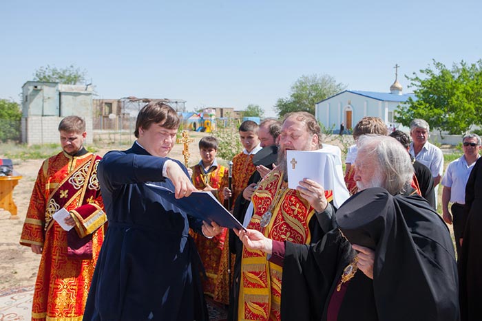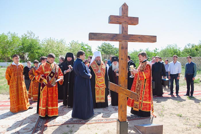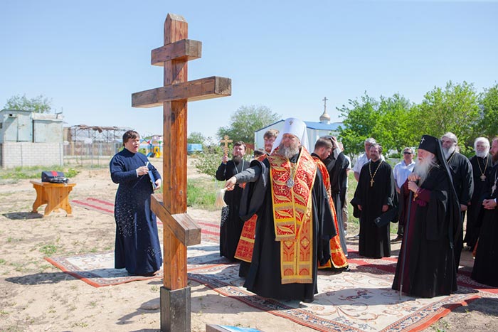 Глава Митрополичьего округа в сослужении архиепископа Антония и епископа Амфилохия освятил крест и закладной камень на месте строительства духовно-культурного центра при Благовещенском храме.