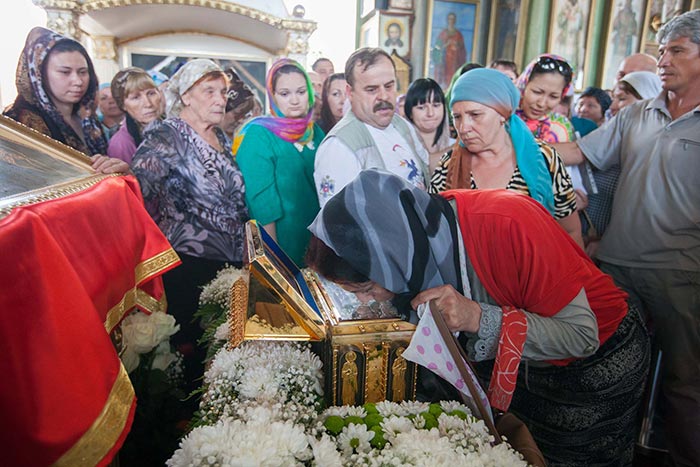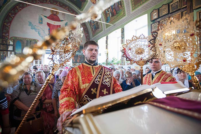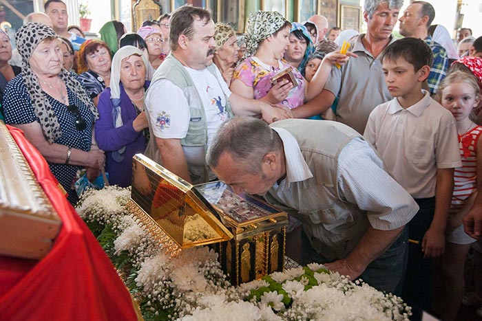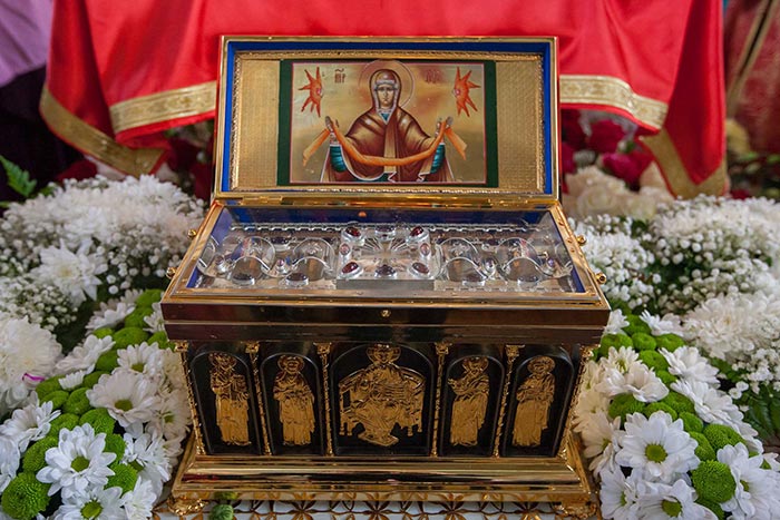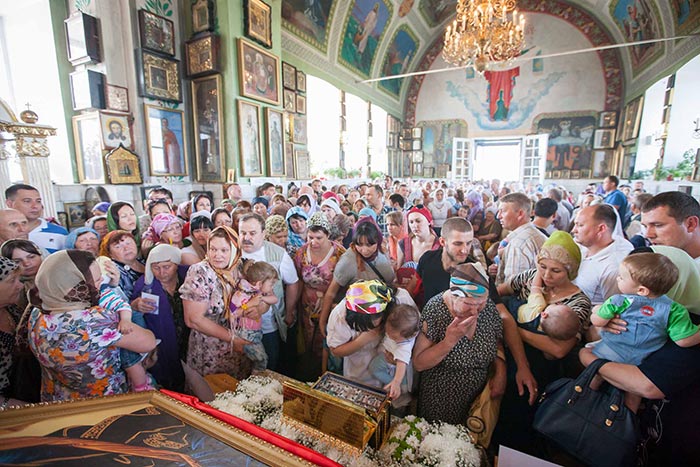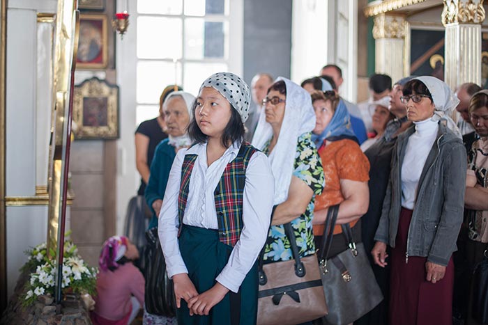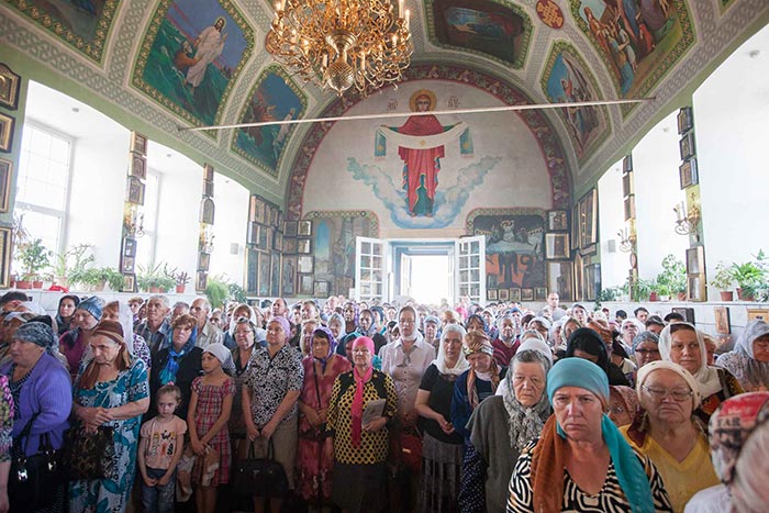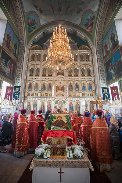 За богослужением молились прихожане собора и многочисленные паломники из разных районов Атырауской области, прибывшие поклониться Честному Поясу Пресвятой Богородицы, принесенному в Гурьев накануне.