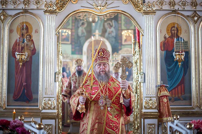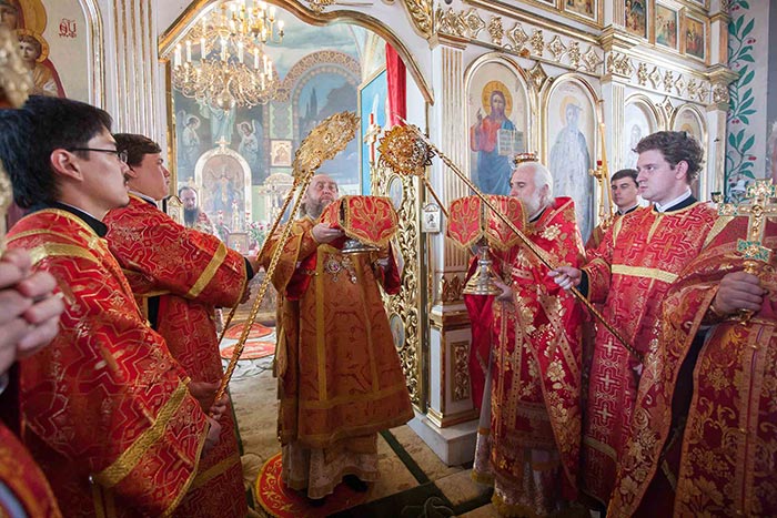 Главе Православной Церкви Казахстана сослужили: архиепископ Уральский и Актюбинский Антоний, епископ Усть-Каменогорский и Семипалатинский Амфилохий; настоятель кафедрального Михаило-Архангельского собора архимандрит Феодосий (Курьянов); настоятель храма в честь иконы Божией Матери «Всех скорбящих радость» города Алма-Аты протоиерей Евгений Воробьев; руководитель Издательского отдела Казахстанского Митрополичьего округа архимандрит Иосиф (Еременко); секретарь Уральской епархии игумен Дионисий (Козулев); настоятель Успенского храма протоиерей Михаил Степанов; руководитель Информационного отдела Митрополичьего округа протоиерей Евгений Иванов; секретарь Уральского епархиального управления архидиакон Василий (Крюков); руководитель службы протокола митрополита протодиакон Роман Головин; протодиакон Свято-Никольского собора Южной столицы Георгий Засыпкин; клирики алма-атинского Вознесенского собора диакон Владимир Сыровацкий и диакон Димитрий Савченко; клирики Уральской епархии.
