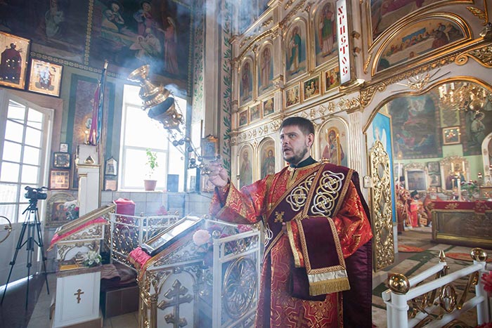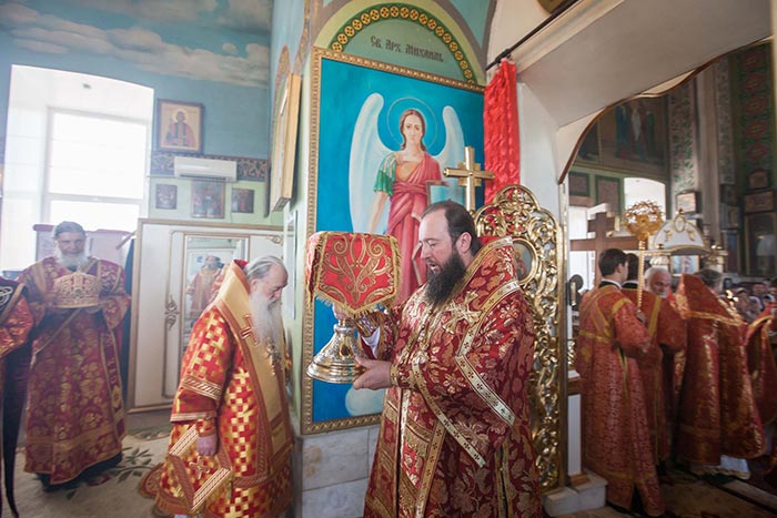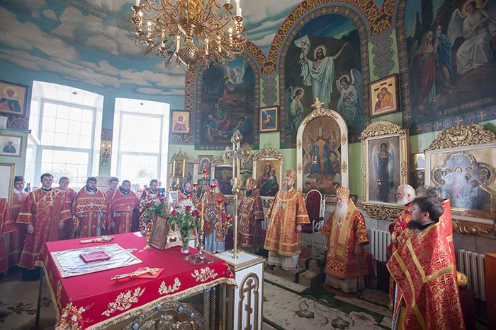 Владыка митрополит поздравил собравшихся с продолжающимися торжествами о воскресении Христа из мертвых и радостью принесения в Гурьев Пояса Царицы Небесной. В память о своем архипастырском визите в дар храму Глава Митрополичьего округа передал икону преподобного Серафима Саровского и святую плащаницу.