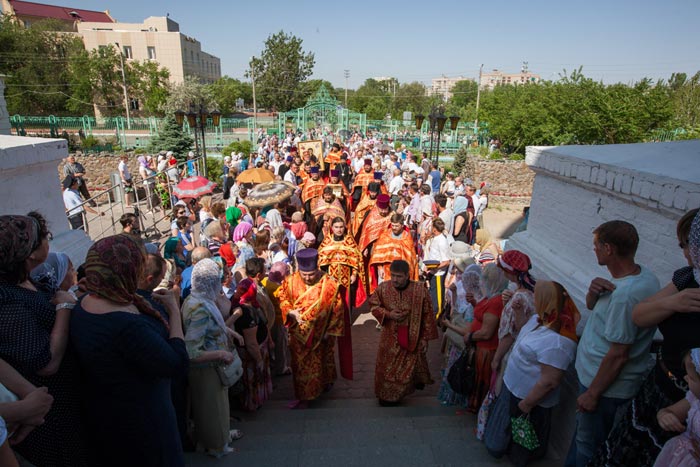 Глава Православной Церкви Казахстана митрополит Астанайский и Казахстанский Александр и глава Астраханской митрополии митрополит Астраханский и Камызякский Иона совершили Божественную Литургию в Князь-Владимирском соборе Астрахани.