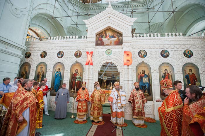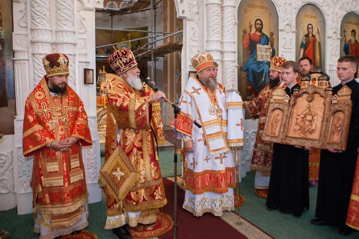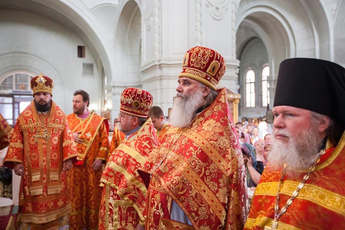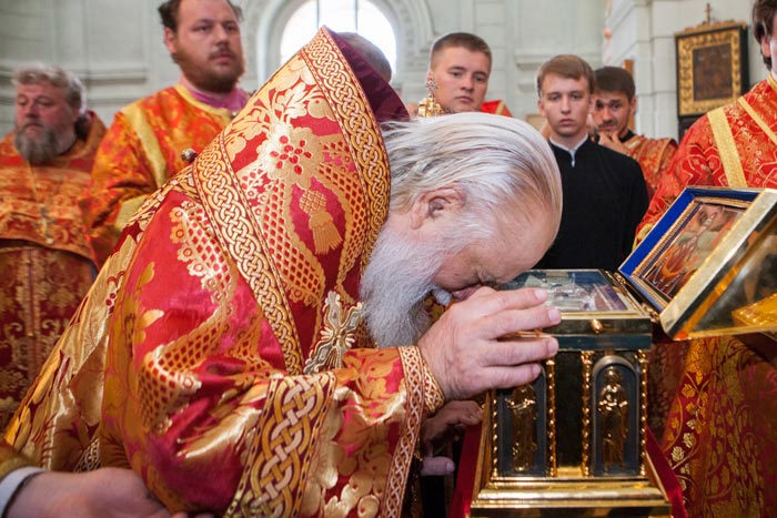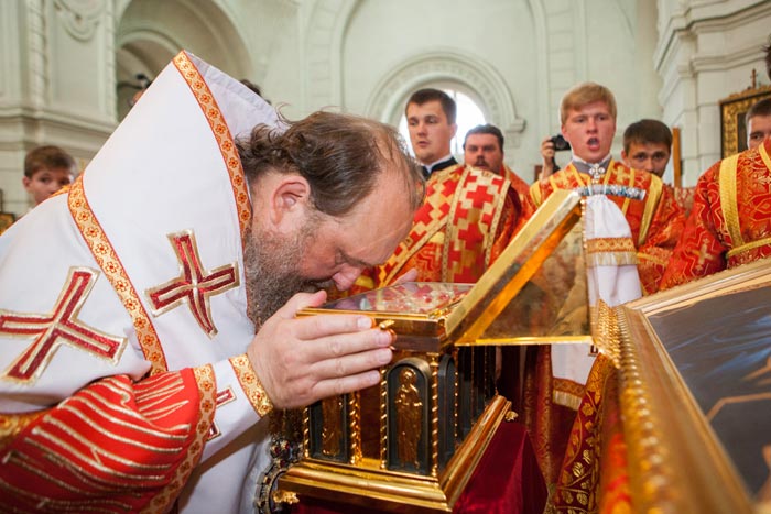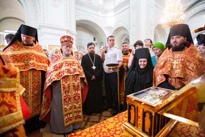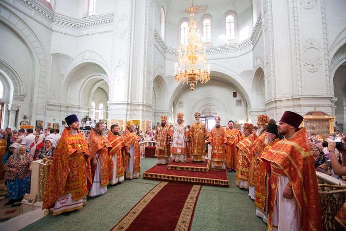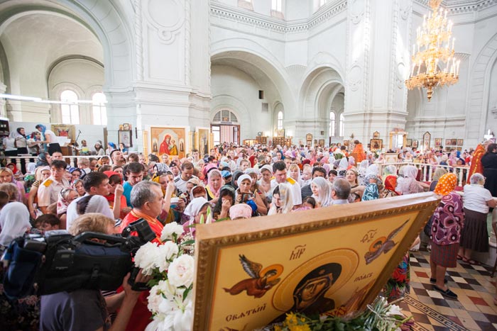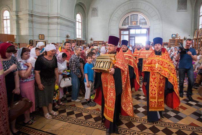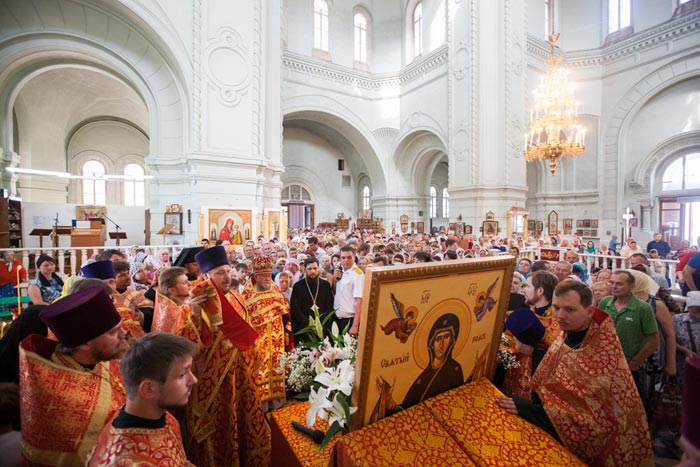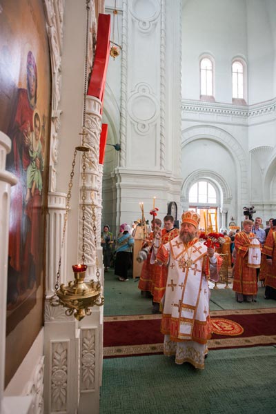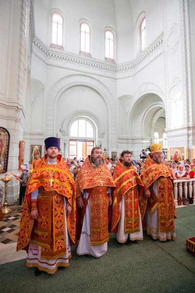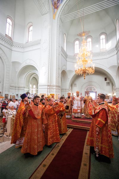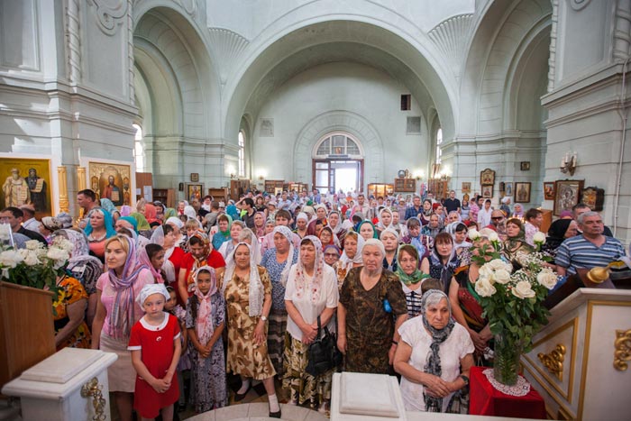 До начала воскресной Литургии в Князь-Владимирском соборе Астрахани непрерывно совершалось поклонение Поясу Божией Матери, городским духовенством служились молебны. Почтить святыню и получить духовное укрепление прибыли тысячи паломников из городов и сел Астраханской области.