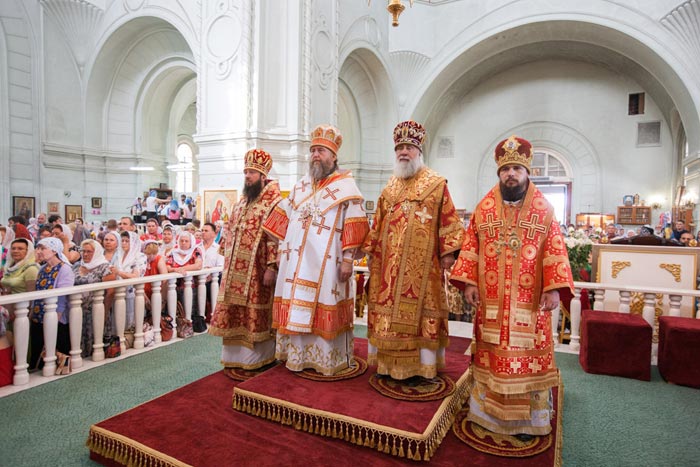 Преосвященным митрополитам сослужили: епископ Усть-Каменогорский и Семипалатинский Амфилохий, епископ Ахтубинский и Енотаевский Антоний; благочинный церквей первого округа Астрахани, настоятель Иоанно-Златоустовской церкви протоиерей Виктор Гнатенко; секретарь Астраханско-Камызякской епархии протоиерей Михаил Пристая; настоятель храма в честь иконы Божией Матери «Всех скорбящих радость» города Алма-Аты протоиерей Евгений Воробьев; руководитель Издательского отдела Казахстанского Митрополичьего округа архимандрит Иосиф (Еременко); руководитель Информационного отдела Митрополичьего округа протоиерей Евгений Иванов; настоятель Князь-Владимирского собора Астрахани протоиерей Александр Успенский; руководитель службы протокола митрополита протодиакон Роман Головин; протодиакон Свято-Никольского собора Южной столицы Георгий Засыпкин; клирики алма-атинского Вознесенского собора диакон Владимир Сыровацкий и диакон Димитрий Савченко; клирики Астраханской митрополии.