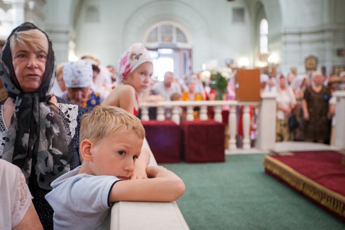До начала вечернего богослужения в Князь-Владимирском соборе продолжалось молитвенное поклонение Поясу Приснодевы Марии.