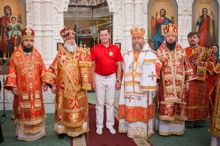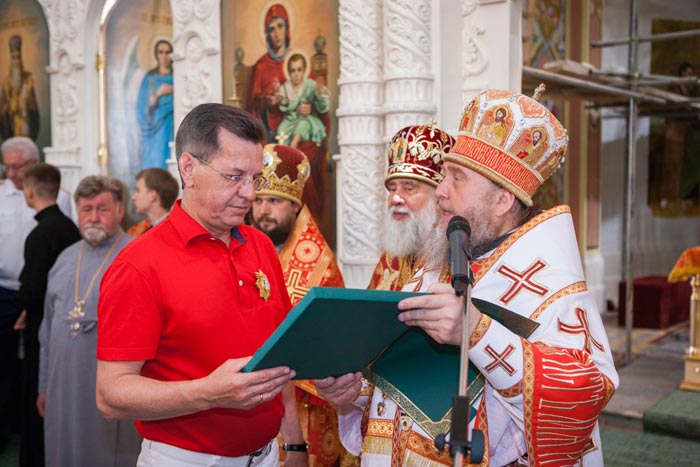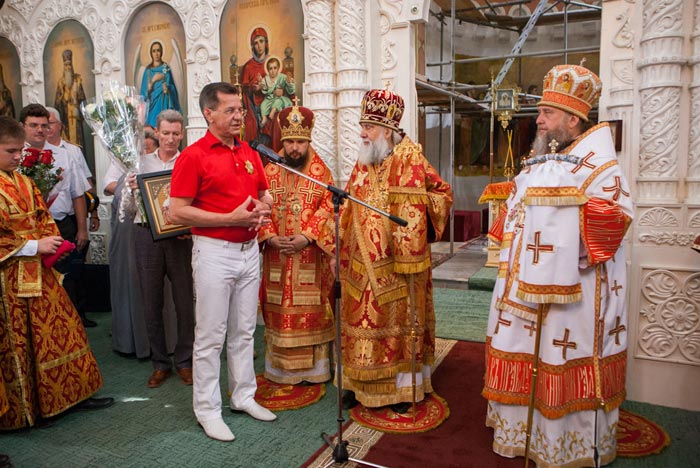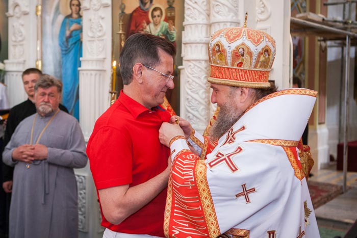 За развитие отношений между Казахстанским Митрополичьим округом и Астраханской областью Российской Федерации глава Астраханской области был удостоен высокой награды Православной Церкви Казахстана – ордена «За заслуги».