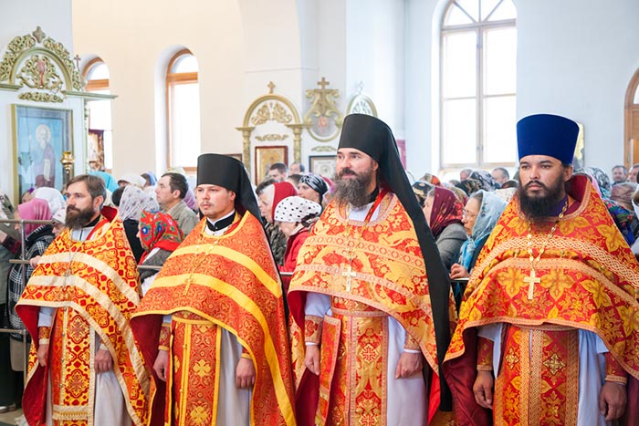 Главе Православной Церкви Казахстана и казахстанским иерархам сослужили: руководитель Издательского отдела Казахстанского Митрополичьего округа архимандрит Иосиф (Еременко), настоятель храма в честь иконы Божией матери «Всех скорбящих радость» протоиерей Евгений Воробьев; клирик Свято-Андреевского собора архимандрит Спиридон (Теплухин); руководитель Информационного отдела Митрополичьего округа протоиерей Евгений Иванов; и.о. секретаря Усть-Каменогорской епархии иерей Евгений Яганов, благочинный городских приходов иерей Алексей Анищенко; руководитель службы протокола митрополита протодиакон Роман Головин, протодиакон Свято-Никольского собора Алма-Аты Георгий Засыпкин, диакона Вознесенского алма-атинского кафедрального собора Владимир Сыровацкий и Димитрий Савченко; духовенство Усть-Каменогорской епархии.