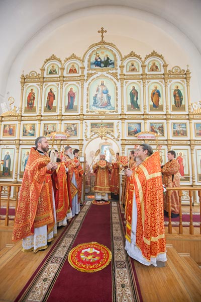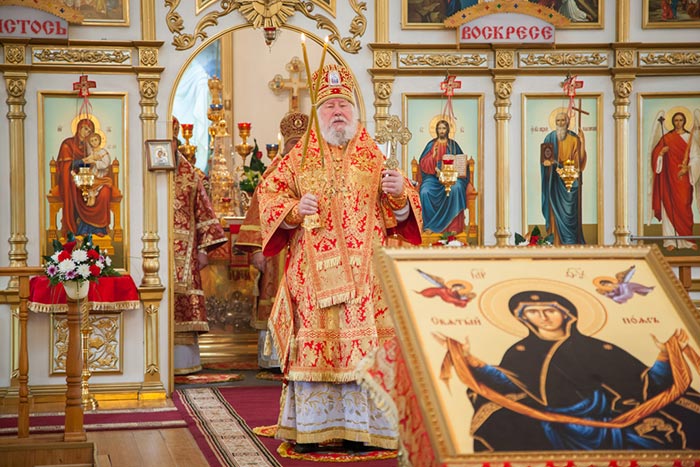 В Свято-Андреевском кафедральном соборе столицы Рудного Алтая митрополит Астанайский и Казахстанский Александр и сопровождающие Пояс Богородицы архипастыри - епископ Петропавловский и Булаевский Гурий; епископ Павлодарский и Экибастузский Варнава и епископ Усть-Каменогорский и Семипалатинский Амфилохий – совершили Божественную Литургию.