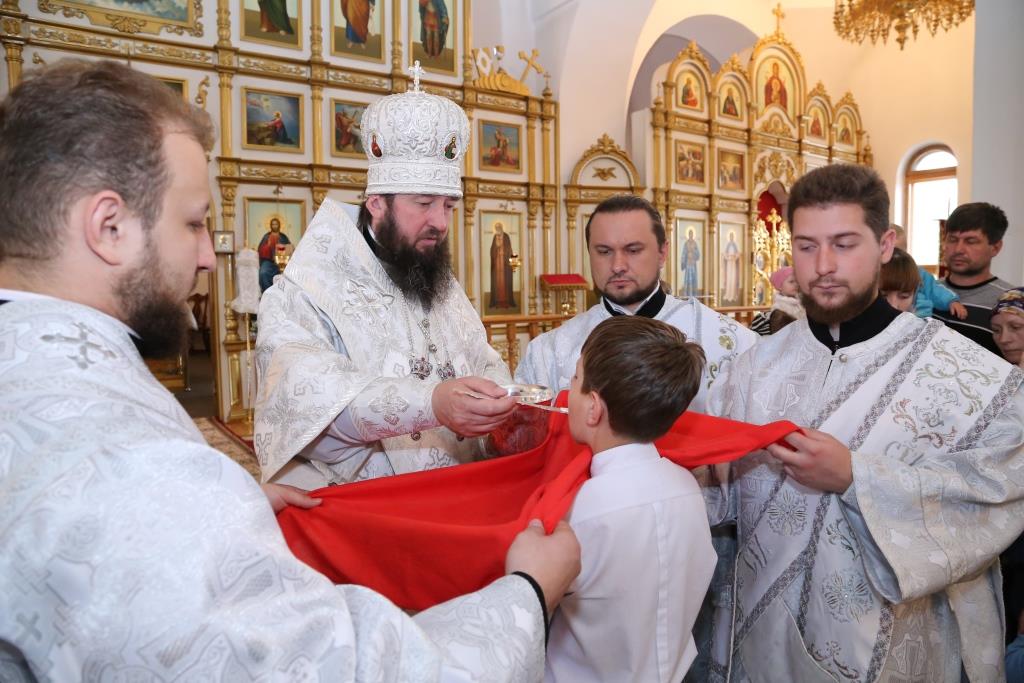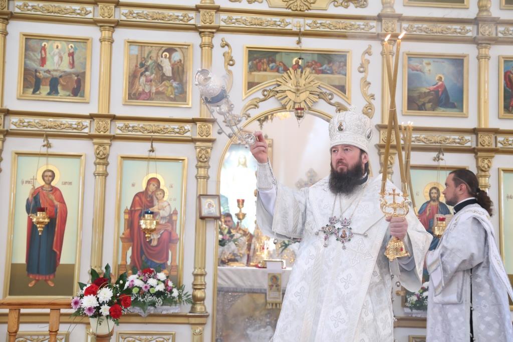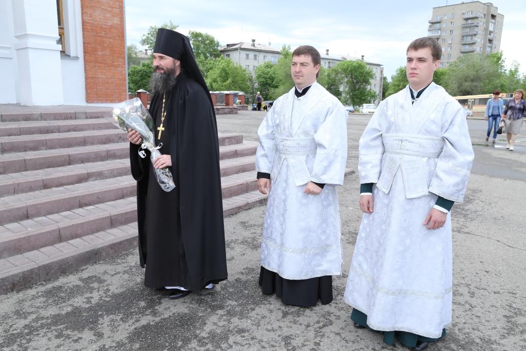 Владыке епископу сослужили: архимандрит Спиридон (Теплухин), иерей Алексий Клепиков, иеромонах Никодим (Авдеев), иеромонах Силуан (Магилев), иерей Константин Дьяков, протодиакон Андрей Дудник, иеродиакон Мефодий (Шевчук).
