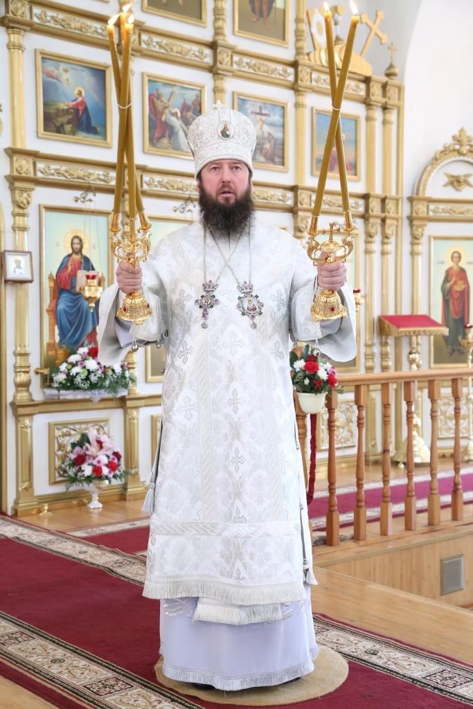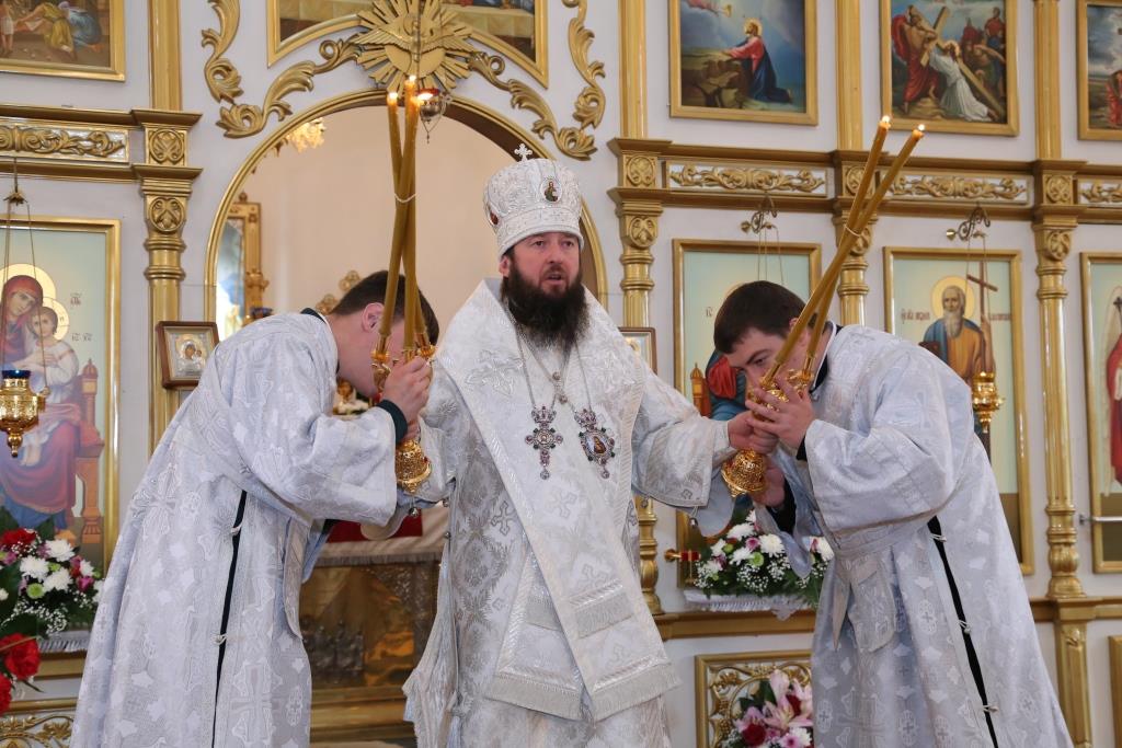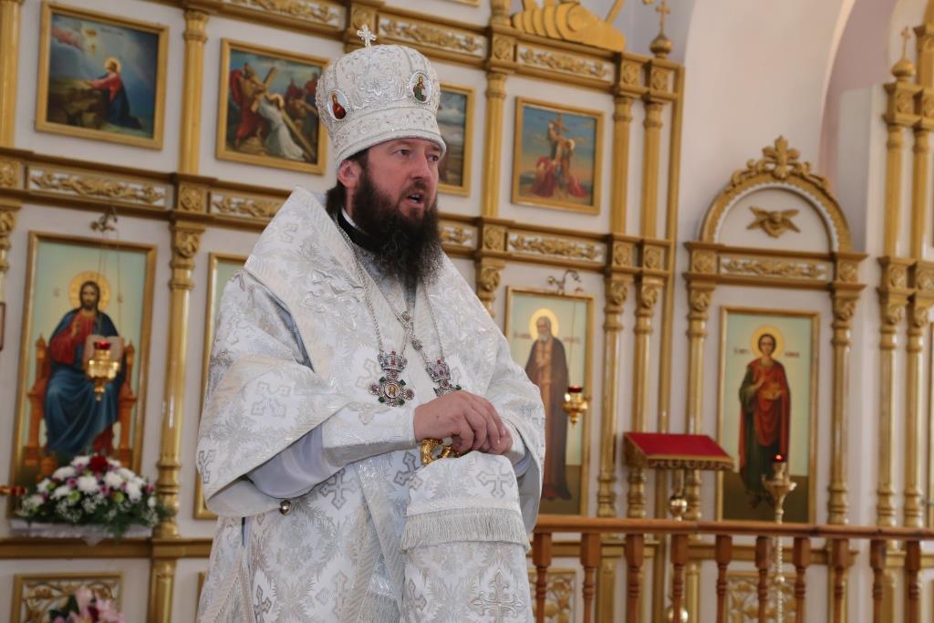 По окончании торжественного праздничного Богослужения Преосвященный Архипастырь поздравил духовенство и народ Божий с великим праздником и обратился ко всем собравшимся со словами проповеди, в которой рассказал молящимся о значении Евангельского события Вознесения Сына Божия в домостроительстве человеческого спасения.