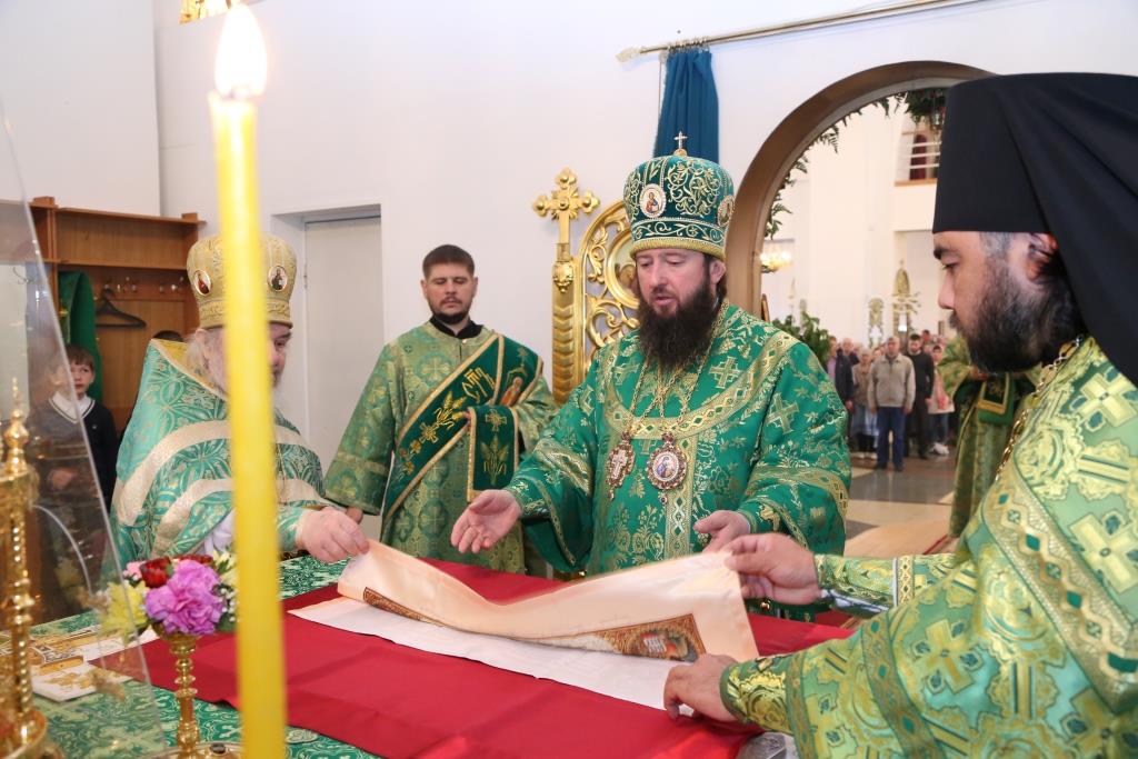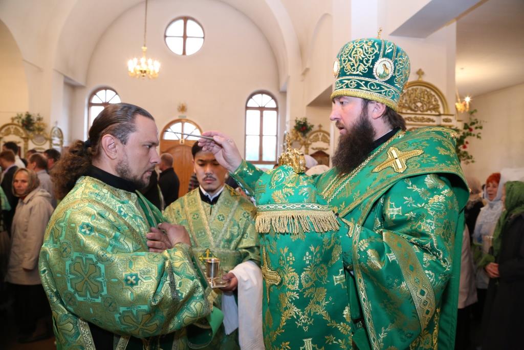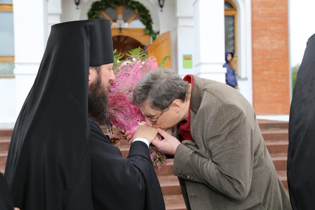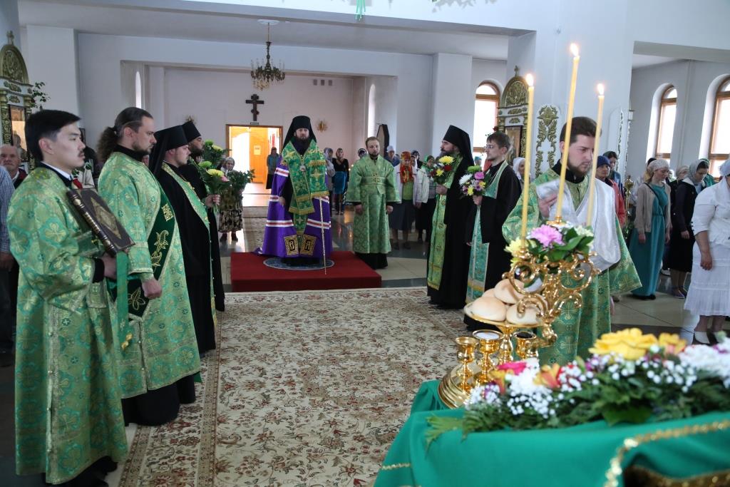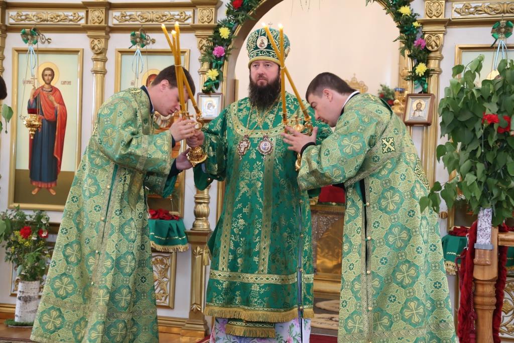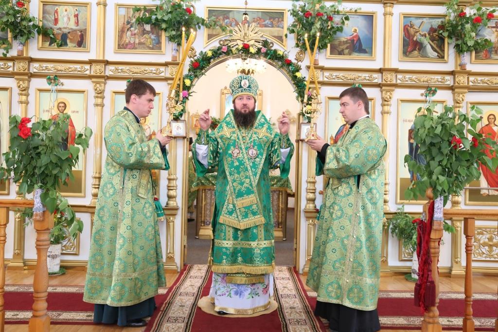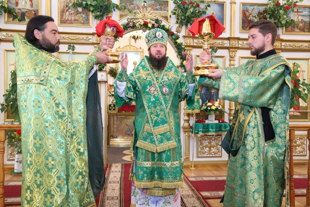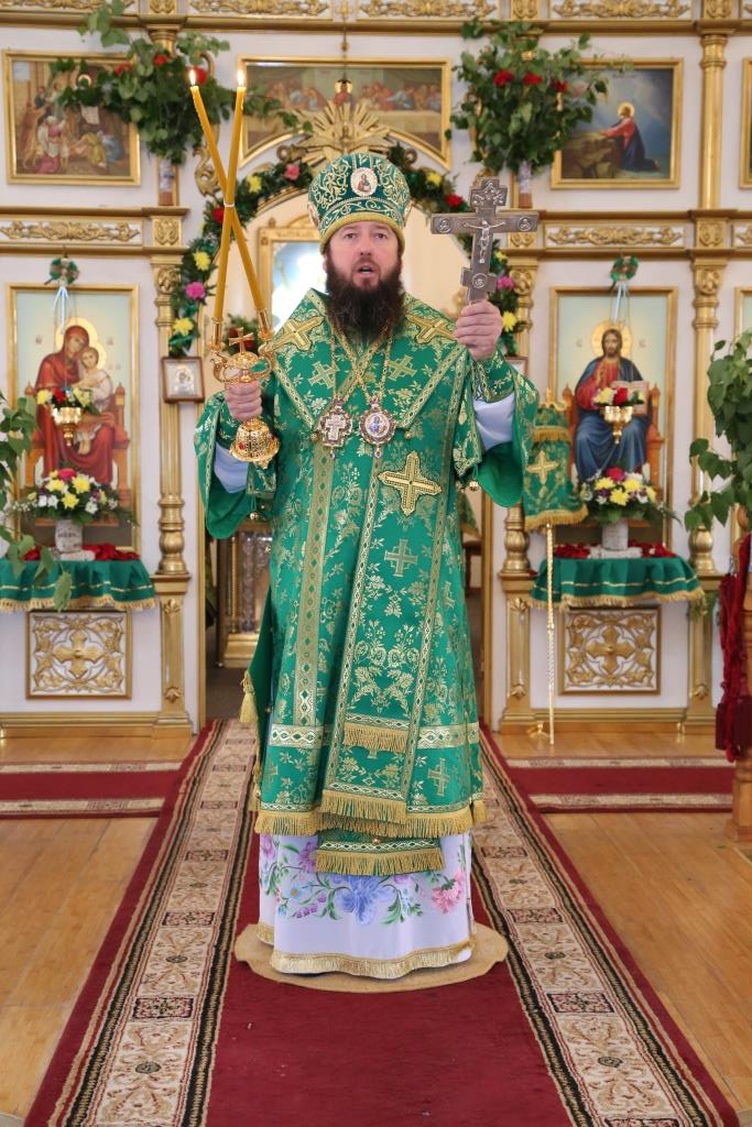 В завершение богослужения Преосвященнейший епископ Амфилохий поздравил духовенство и многочисленных прихожан с праздником Святой Пятидесятницы и обратился к собравшимся с Архипастырским словом.