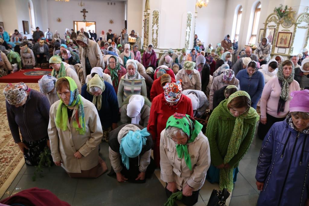 По отпусте Божественной Литургии был прочитан 9-й час, после которого была совершена праздничная вечерня с чтением 3-ех коленопреклоненных молитв.