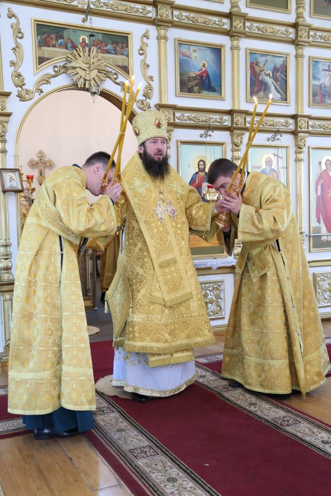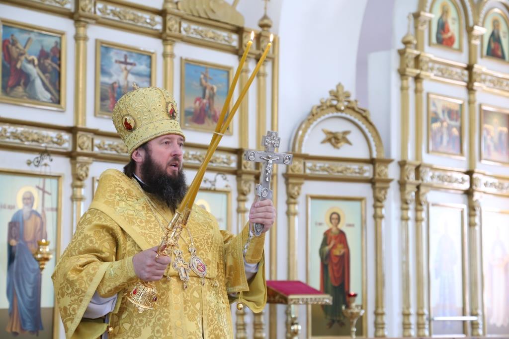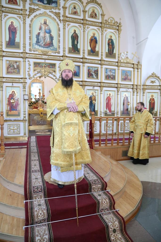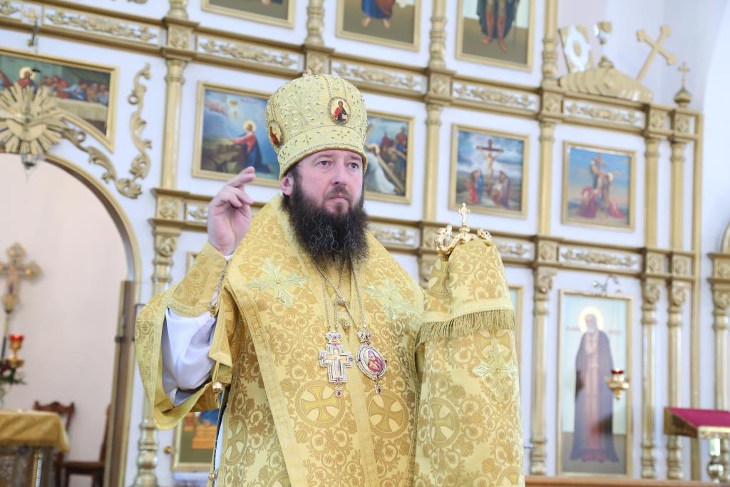 В завершение воскресного богослужения Преосвященный Архипастырь поздравил духовенство и народ Божий с праздником всех святых, после чего обратился к прихожанам со словами проповеди.