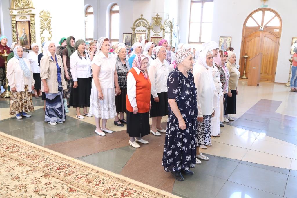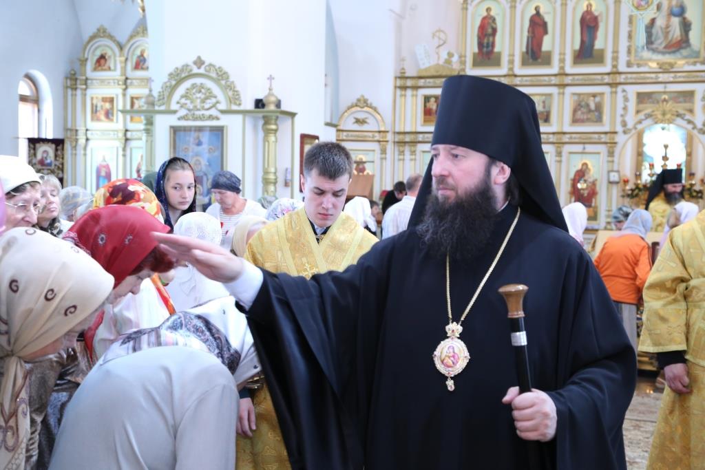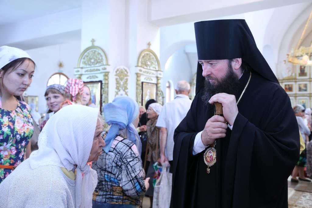 «Великое множество святых от века и до сего дня просияло в Церкви Христовой, имена многих нам известны, мы чтим их, прославляем и возносим к ним наши молитвы. Но есть и те святые, имена и подвиги которых скрыты от нас, и ведомы Одному лишь Богу. И сегодняшний день, когда Церковь собирает всех верных ради совместных молитв, посвящен памяти этих святых мужей и жен, преподобных и мучеников, праведников и угодников Божиих. Глубоко промыслительно, что праздник всех святых установлен Церковью через неделю после праздника Сошествия Святого Духа на апостолов, ибо та благодать, просветившая простых рыбаков, и сотворившая из них «ловцов человеков» (Мф.4:19), до сих пор действует и живет в Церкви Христовой, освящая христиан и являя миру новых угодников Божиих. Сердечно поздравляю вас с этим праздником, и желаю всем собравшимся милости и помощи Божией, крепкой веры, молитвенного предстательства и заступничества великого сонма всех святых, от века Богу угодивших».Так же епископ Амфилохий рассказал прихожанам об этапах реставрации Свято-Троицкого крепостного храма и поблагодарил всех доброхотов и благодетелей за посильную помощь в благом деле восстановления святыни православного Прииртышья.