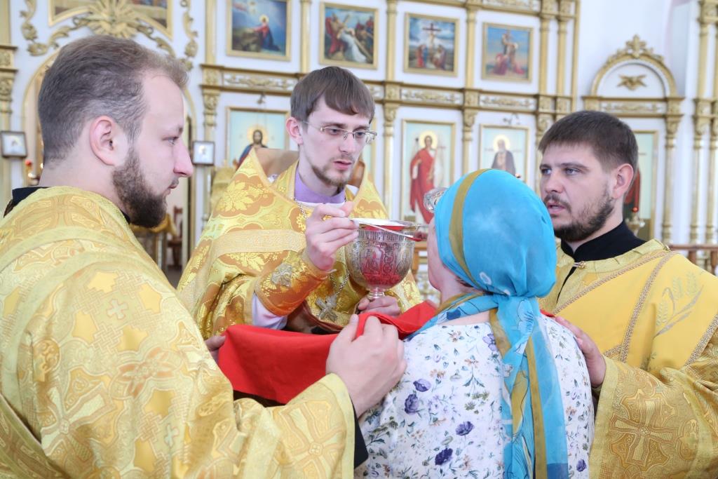 Перед причастием мирян проповедовал иеромонах Никодим (Авдеев).