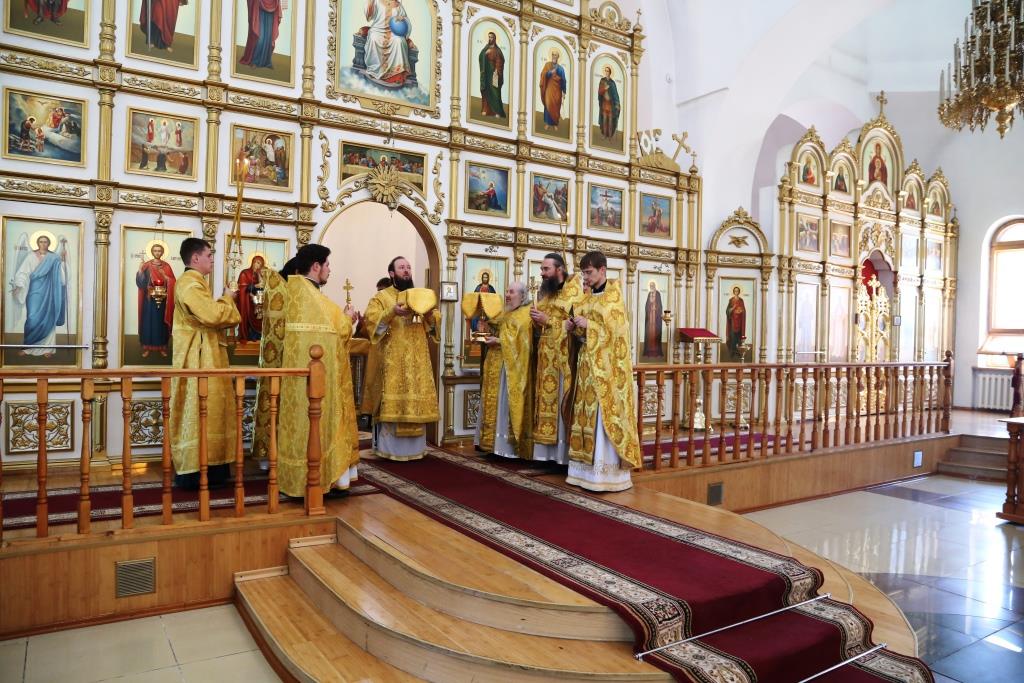 22 июня, воскресение. Неделя 2-я по Пятидесятнице, память всех святых в земле Русской просиявших. В день памяти всех Российских святых Преосвященнейший Амфилохий, епископ Усть-Каменогорский и Семипалатинский, совершил Божественную Литургию святителя Иоанна Златоуста в Свято-Андреевском кафедральном соборе города Усть-Каменогорска. Владыке сослужили: архимандрит Спиридон (Теплухин), иеромонах Севастиан (Андрющенко), иеромонах Никодим (Авдеев), иеромонах Силуан (Магилев), иерей Константин Дьяков, протодиакон Георгий Засыпкин, иеродиакон Мефодий (Шевчук).