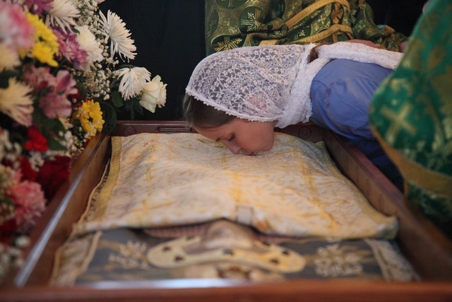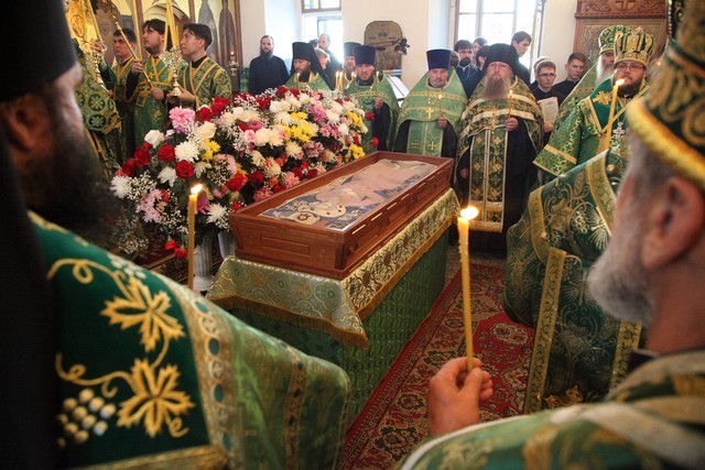 Все верующие, собравшиеся в храме, имели возможность приложиться к честным мощам святого угодника Божия Феодора и помазаться освященным елеем. По установившейся традиции в этот день ковчег с мощами вынимается из раки и устанавливается посреди монастырского храма. Этот обычай дает возможность богомольцам особенно глубоко прочувствовать близость святого к нам.