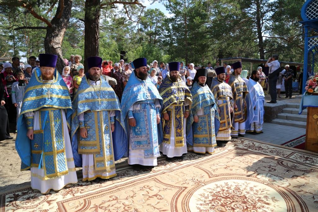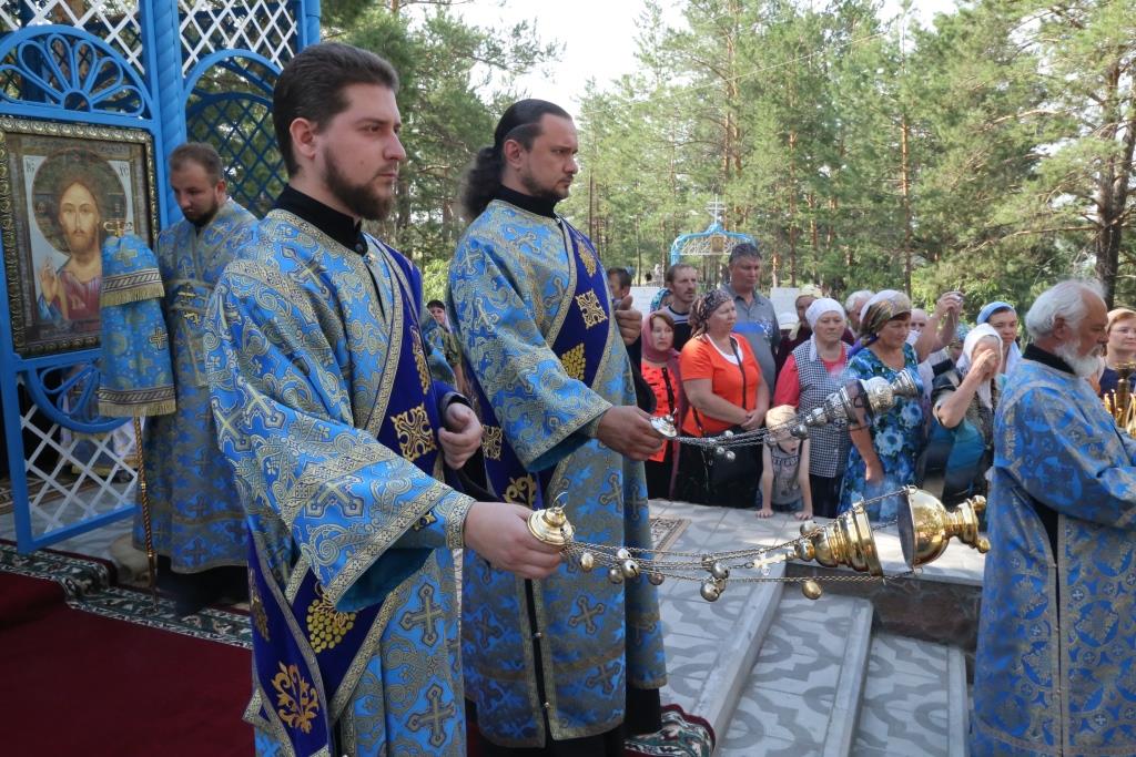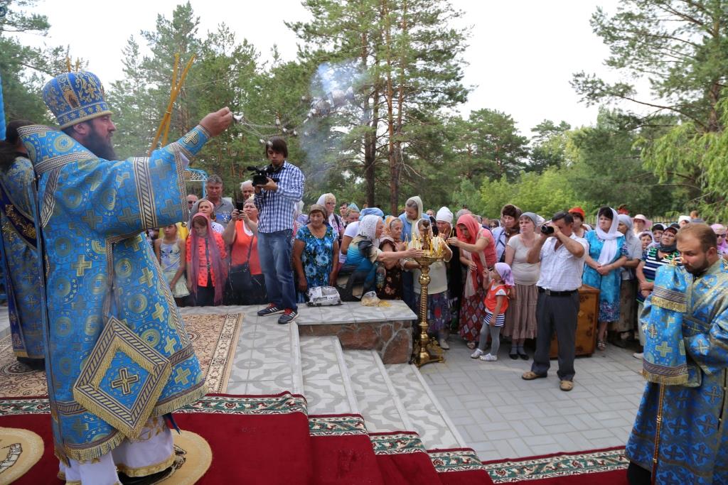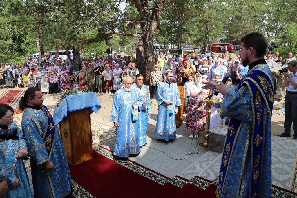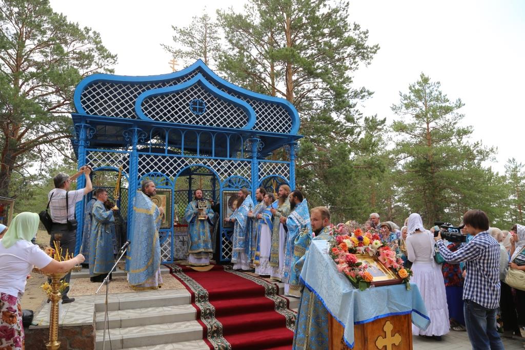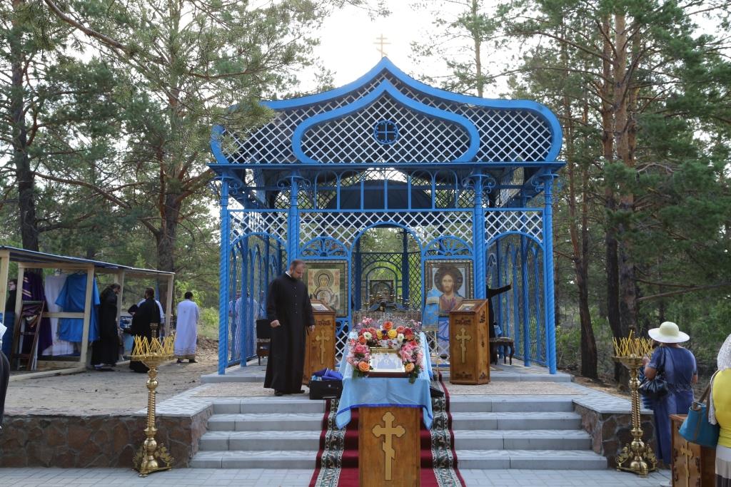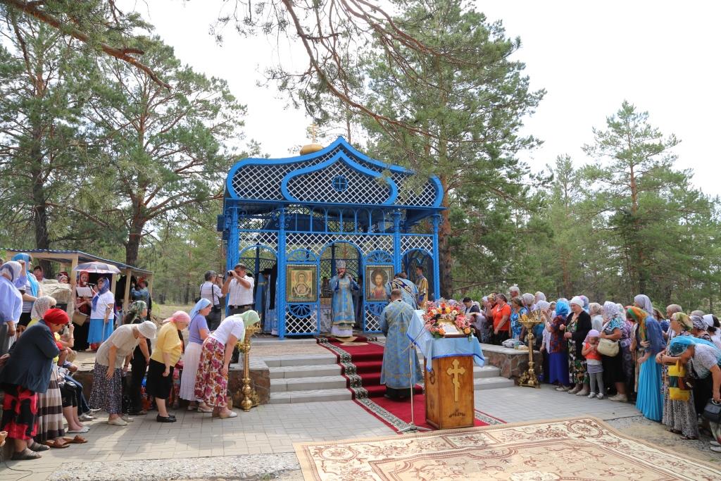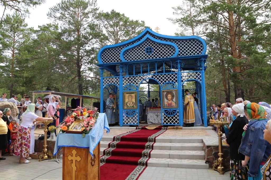 Праздничная Литургия была совершена под открытым небом в сосновом бору, где трудами отца благочинного протоиерея Феодора Проскурина была сооружена кованая часовня, специально подготовленная для богослужения. Более тысячи паломников прибыли на торжество из Усть-Каменогорска, Семипалатинска и других городов и весей епархии.