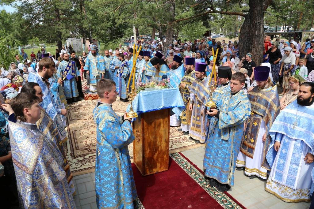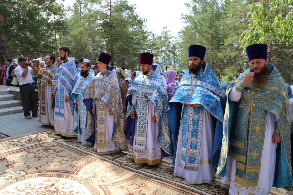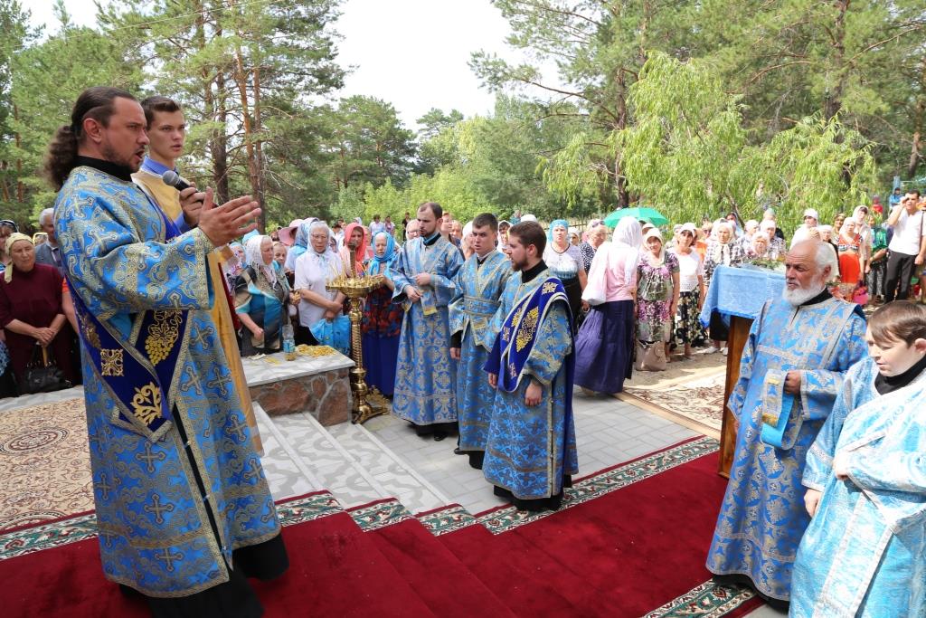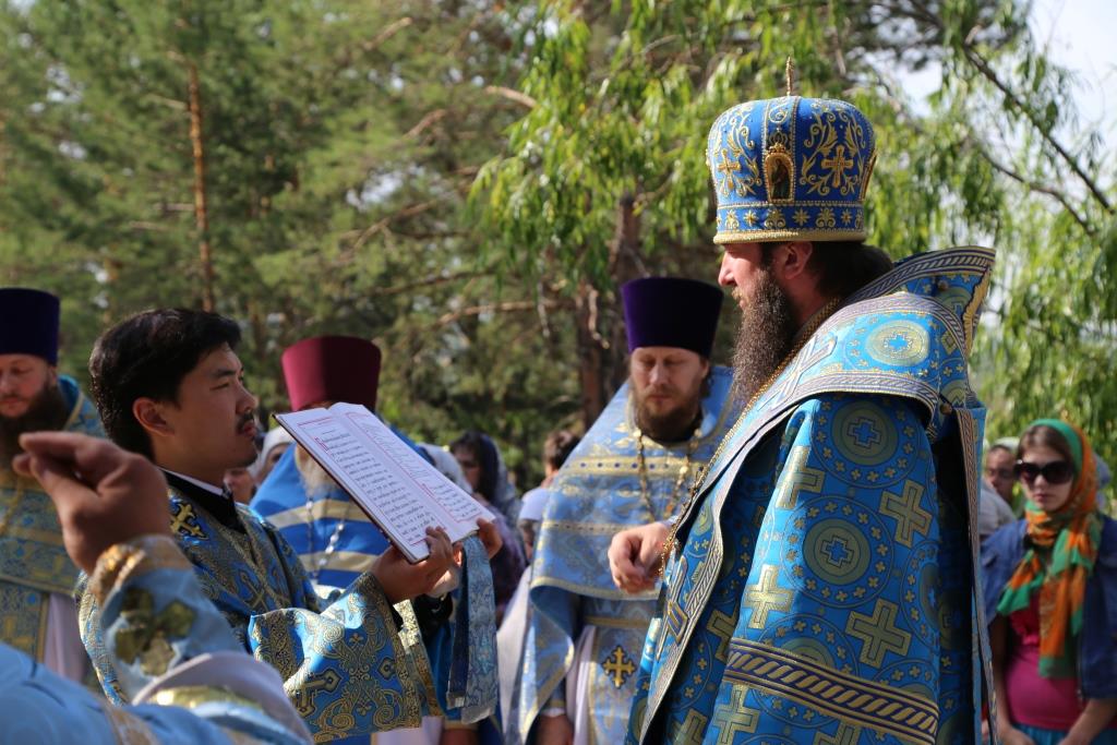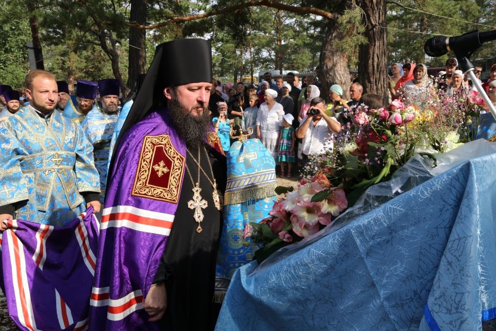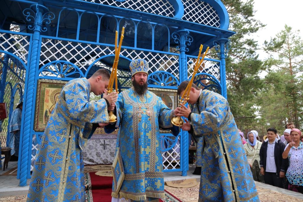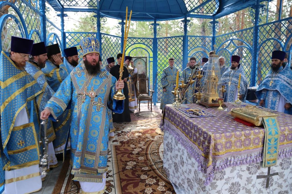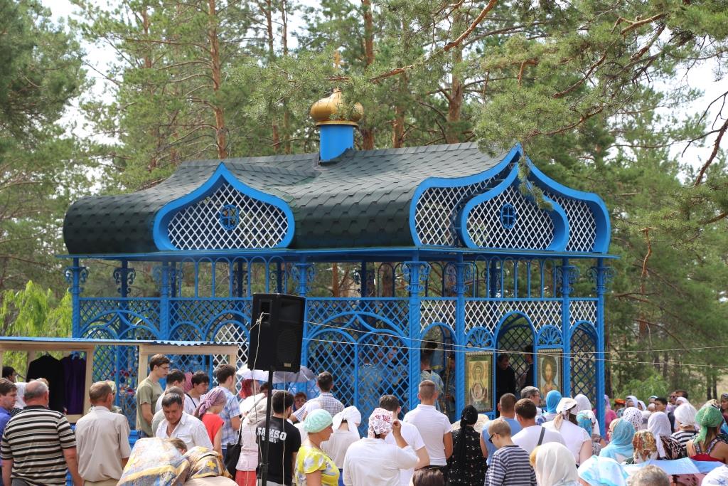 Праздничная Литургия была совершена под открытым небом в сосновом бору, где трудами отца благочинного протоиерея Феодора Проскурина была сооружена кованая часовня, специально подготовленная для богослужения. Более тысячи паломников прибыли на торжество из Усть-Каменогорска, Семипалатинска и других городов и весей епархии.