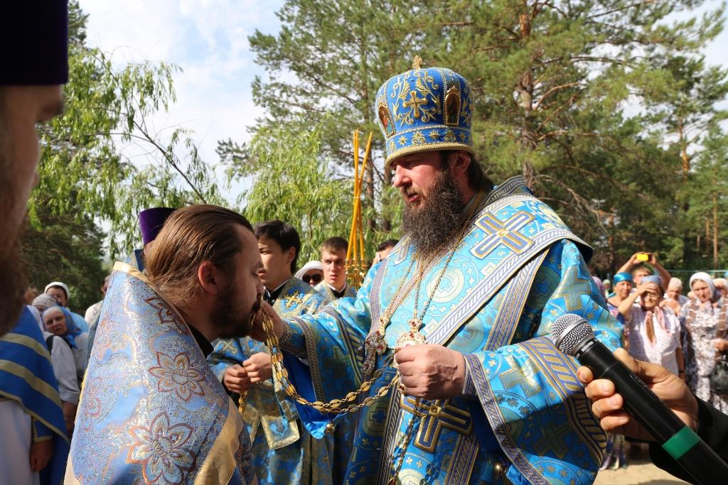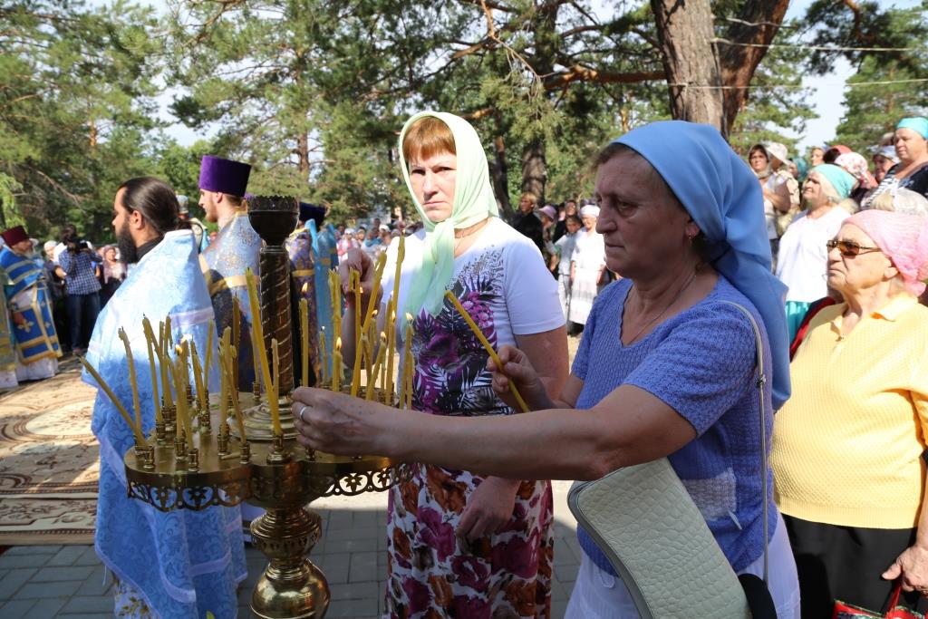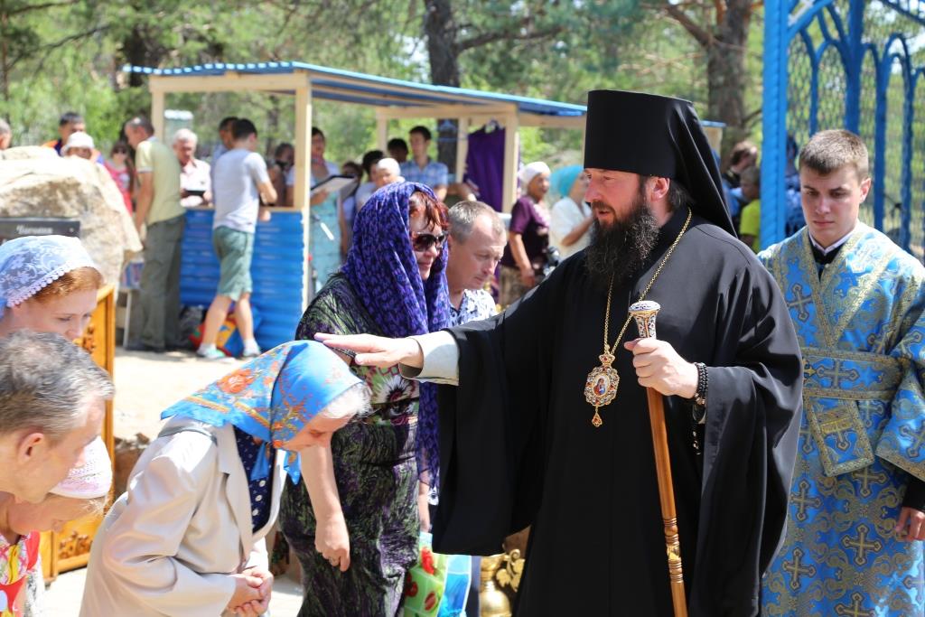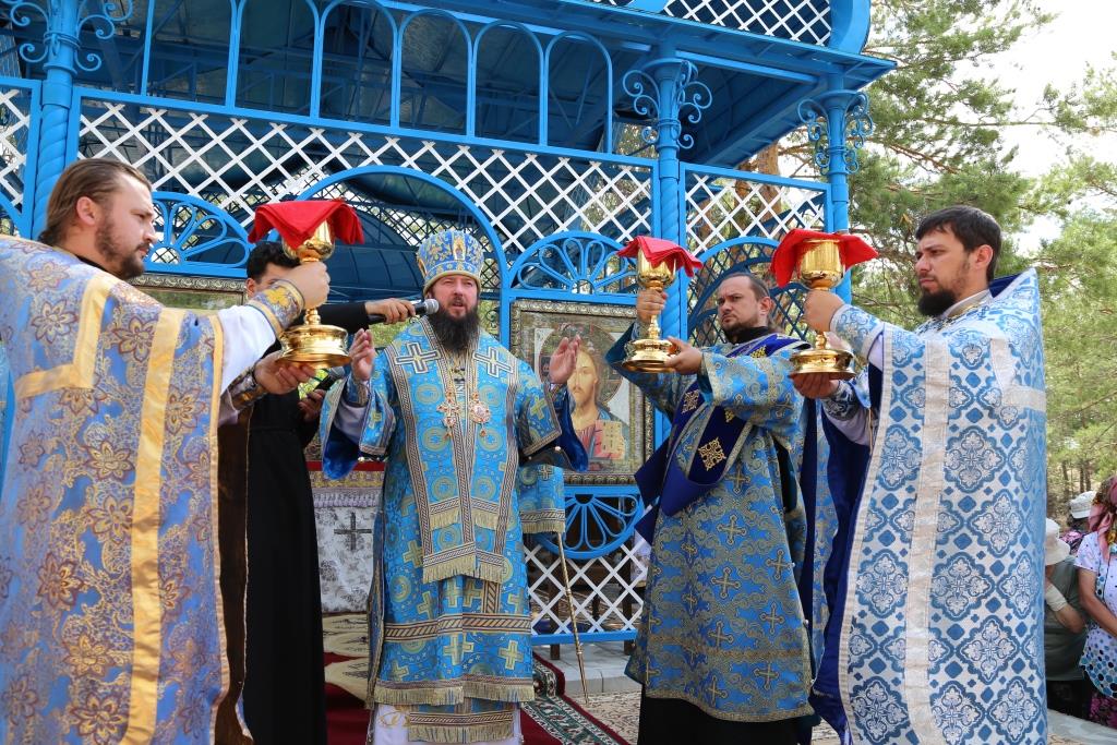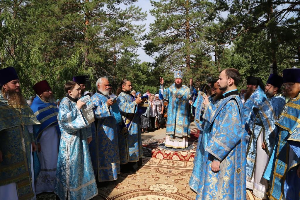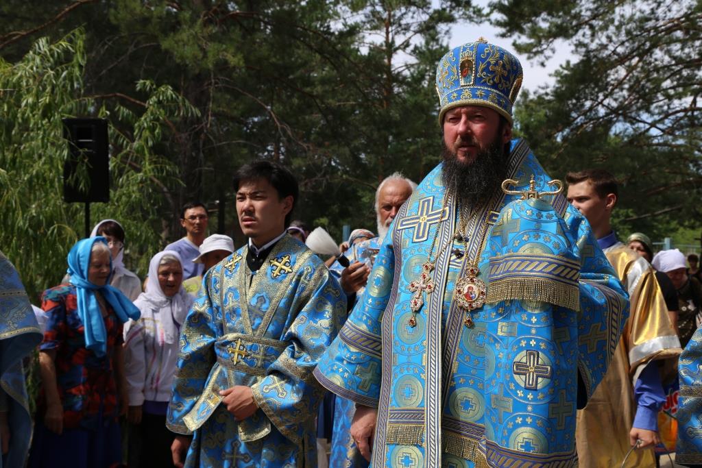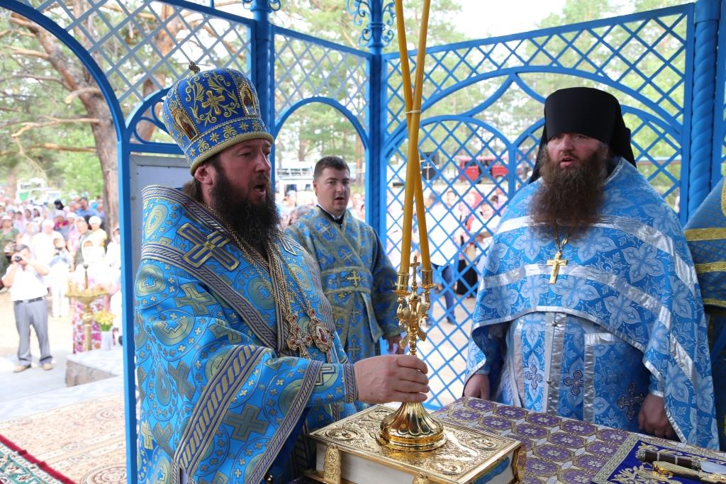 Праздничная Литургия была совершена под открытым небом в сосновом бору, где трудами отца благочинного протоиерея Феодора Проскурина была сооружена кованая часовня, специально подготовленная для богослужения. Более тысячи паломников прибыли на торжество из Усть-Каменогорска, Семипалатинска и других городов и весей епархии.