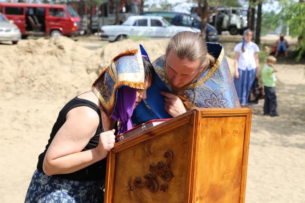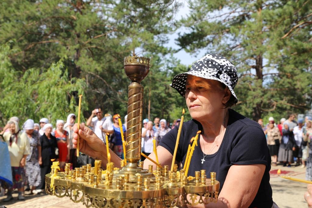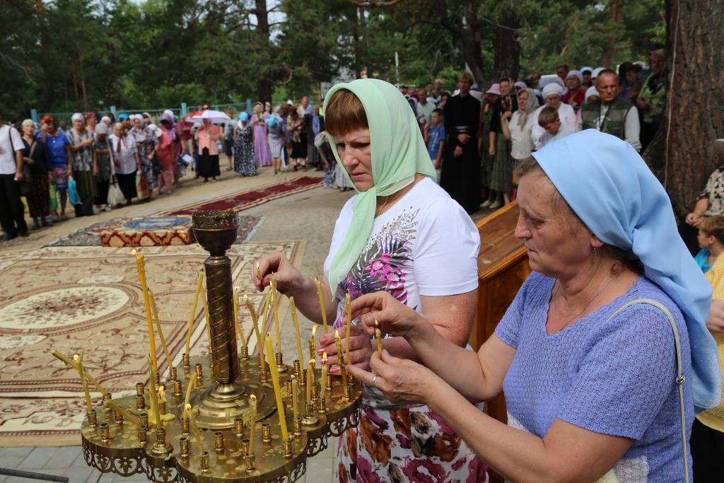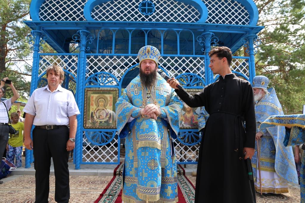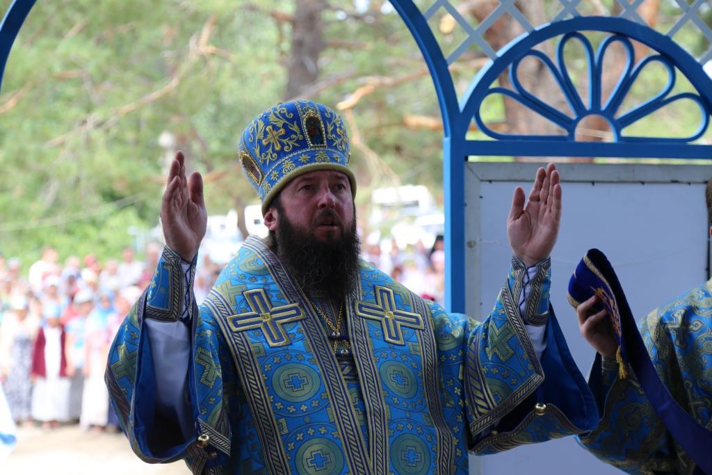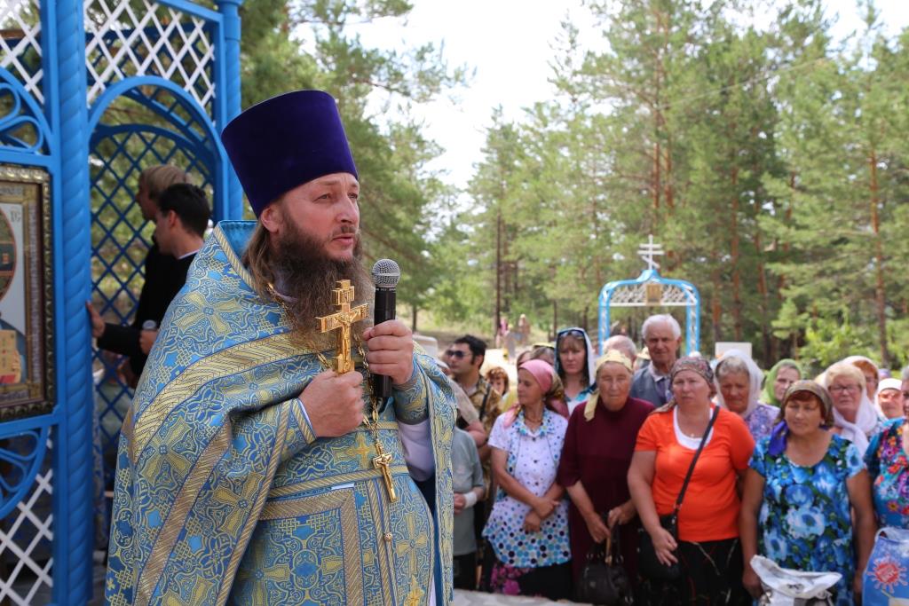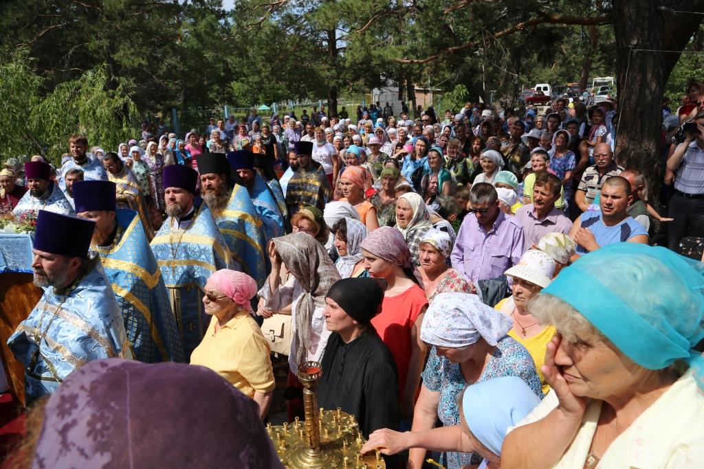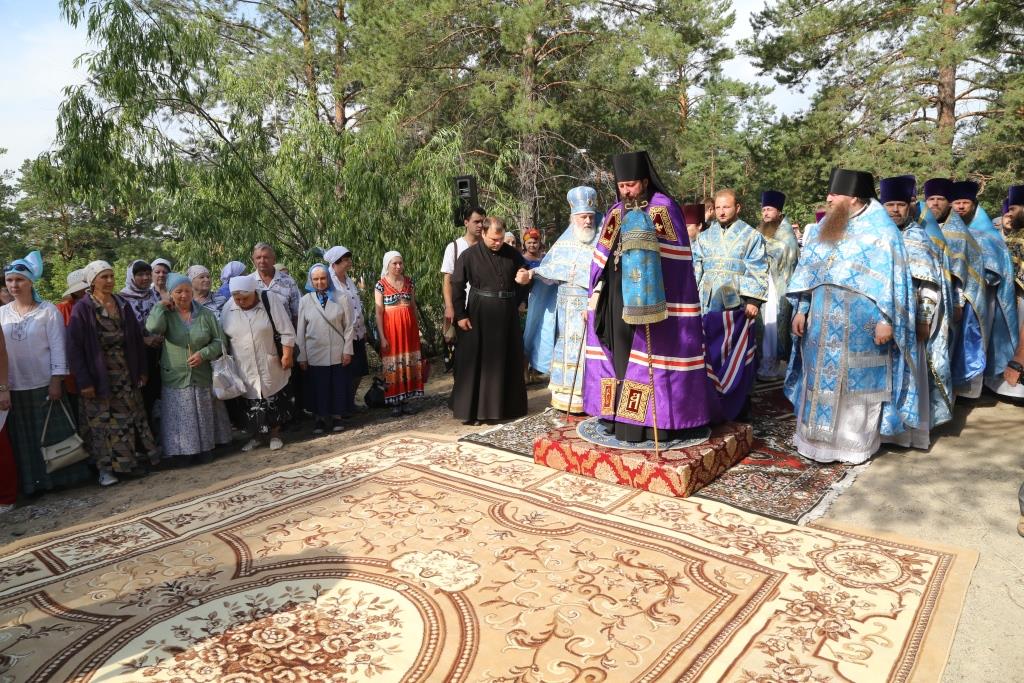 Праздничная Литургия была совершена под открытым небом в сосновом бору, где трудами отца благочинного протоиерея Феодора Проскурина была сооружена кованая часовня, специально подготовленная для богослужения. Более тысячи паломников прибыли на торжество из Усть-Каменогорска, Семипалатинска и других городов и весей епархии.