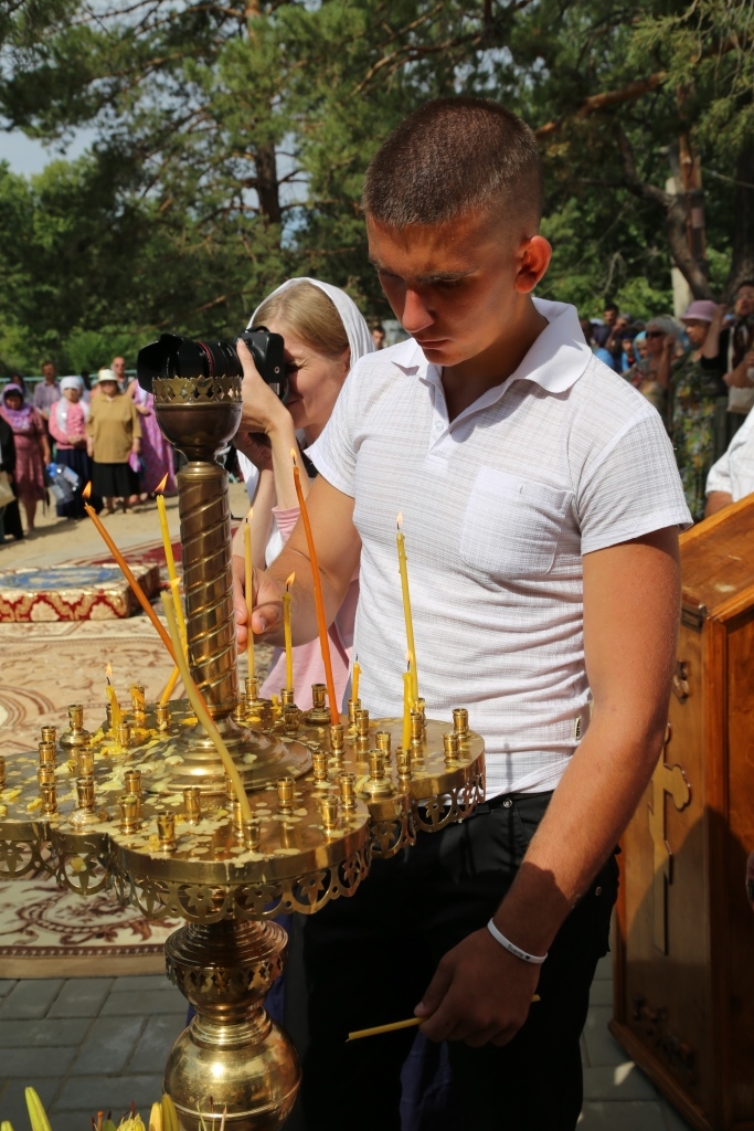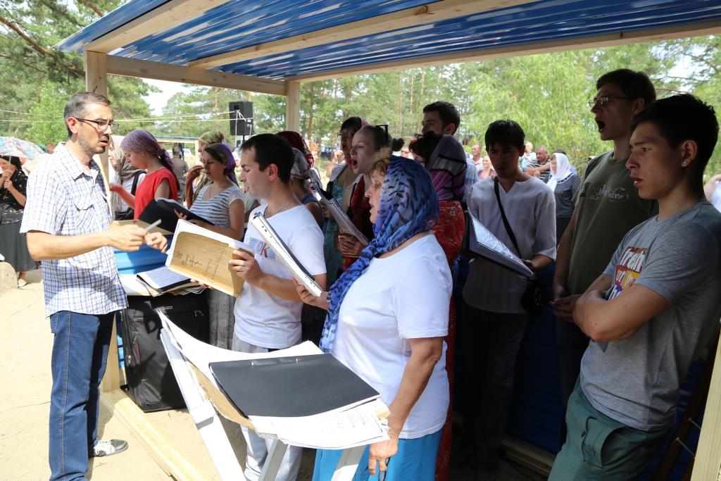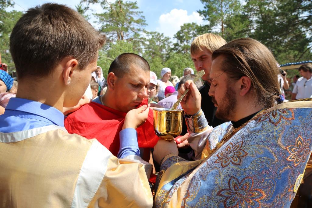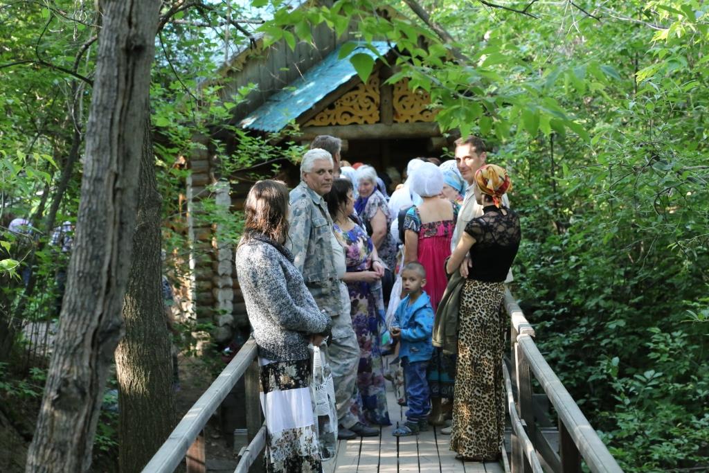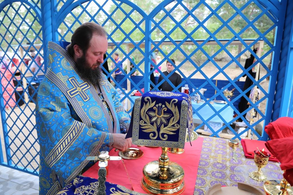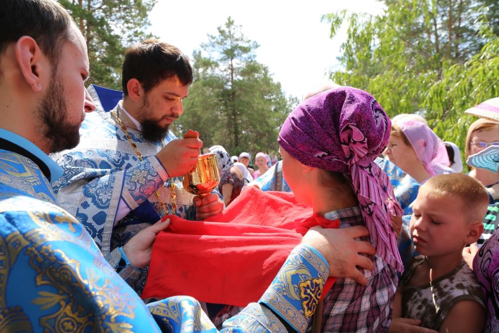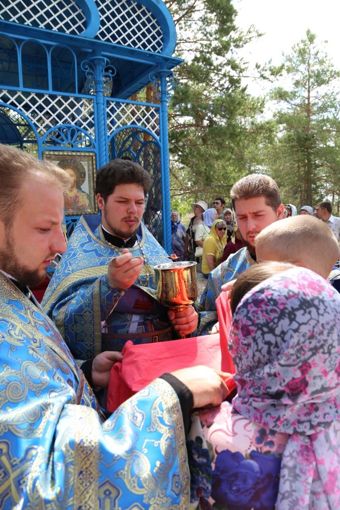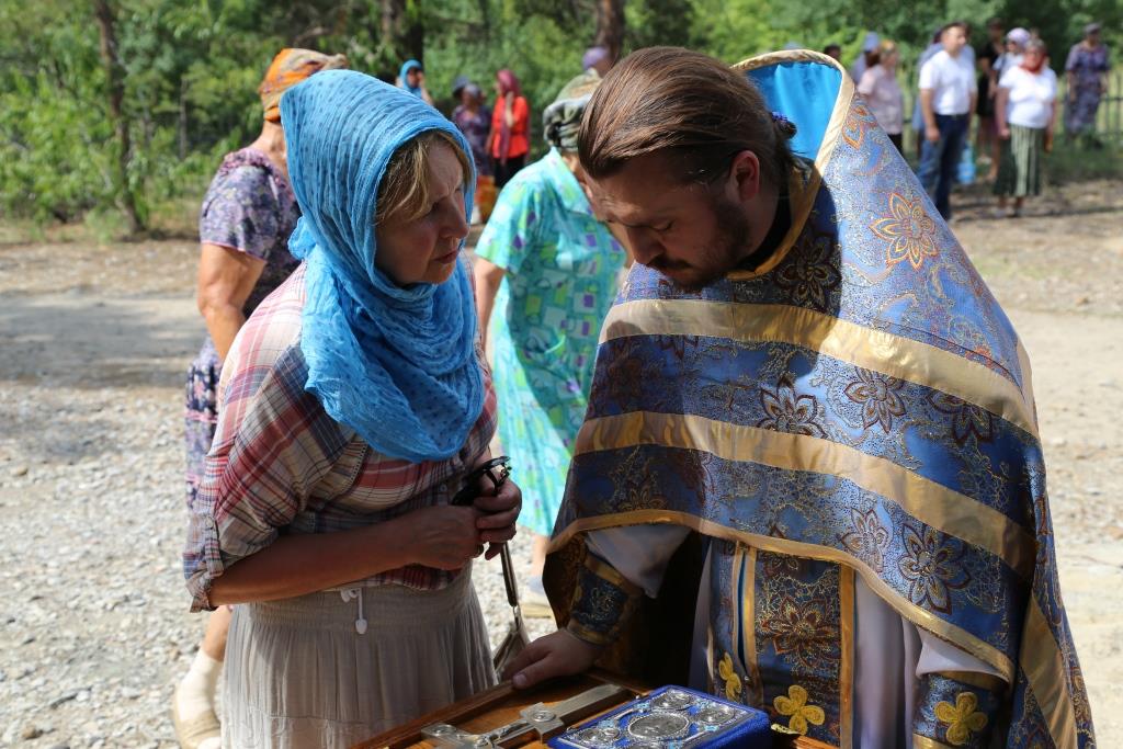 Праздничная Литургия была совершена под открытым небом в сосновом бору, где трудами отца благочинного протоиерея Феодора Проскурина была сооружена кованая часовня, специально подготовленная для богослужения. Более тысячи паломников прибыли на торжество из Усть-Каменогорска, Семипалатинска и других городов и весей епархии.