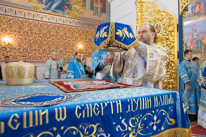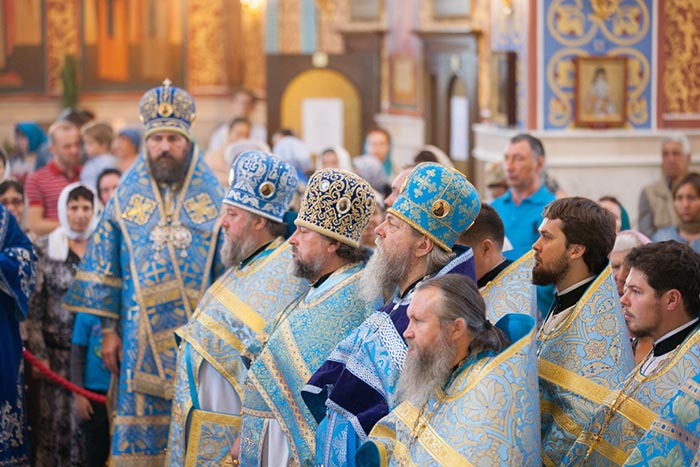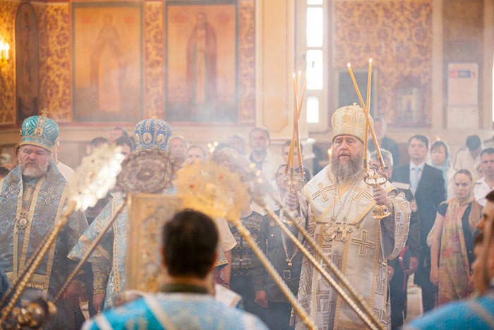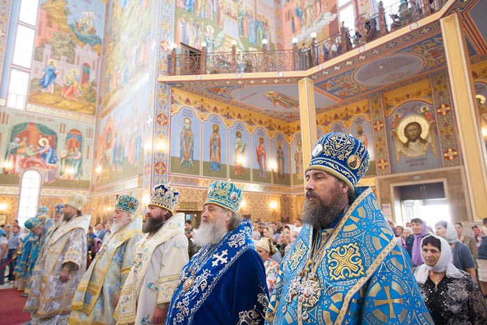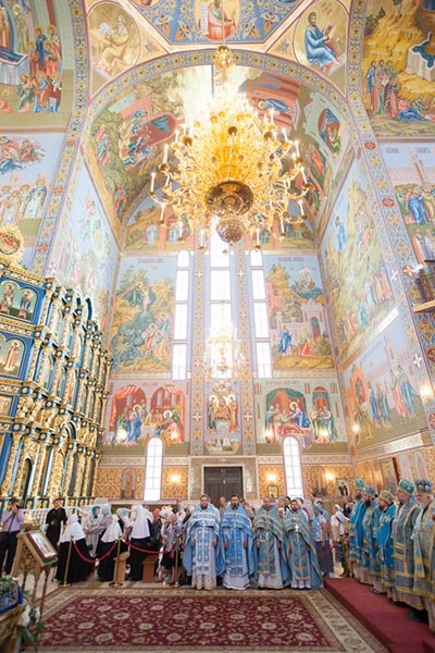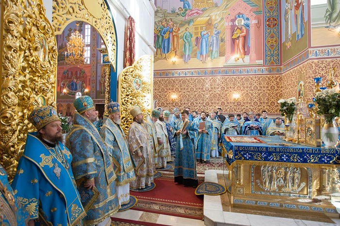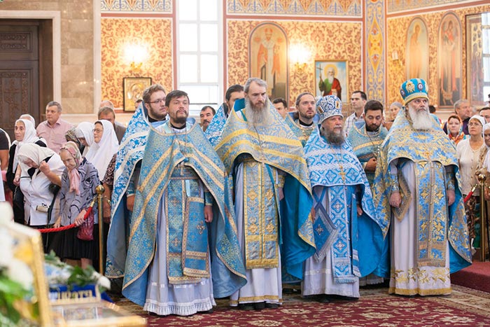 Митрополит Астанайский и Казахстанский Александр совершил Божественную Литургию в главном храме Православной Церкви Казахстана – Успенском кафедральном соборе Астаны. Главе Православной Церкви Казахстана сослужили: архиепископ Чимкентский и Таразский Елевферий, епископ Костанайский и Рудненский Анатолий, викарий Астанайской епархии, епископ Талдыкорганский Нектарий; Управляющий делами Православной Церкви Казахстана епископ Каскеленский Геннадий, епископ Павлодарский и Экибастузский Варнава, епископ Усть-Каменогорский и Семипалатинский Амфилохий, епископ Кокшетауский и Акмолинский Серапион; епископ Петропавловский и Булаевский Владимир; благочинный храмов Астаны архимандрит Сергий (Карамышев); настоятель храма в честь иконы Божией Матери «Всех скорбящих Радость» г. Алма-Аты протоиерей Евгений Воробьев; руководитель Издательского отдела Митрополичьего округа архимандрит Иосиф (Еременко); клирик алма-атинского Покровского храма протоиерей Александр Милованов; благочинный приходов города Петропавловска протоиерей Сергий Снопков; духовник Астанайской епархии иеромонах Модест (Дроздов); ключарь Успенского собора Астаны протоиерей Димитрий Байдек; ключарь Константино-Еленинского собора Астаны иерей Сергий Калиев; руководитель службы протокола Митрополита протодиакон Роман Головин; протодиакон Георгий Засыпкин; духовенство столичных храмов.