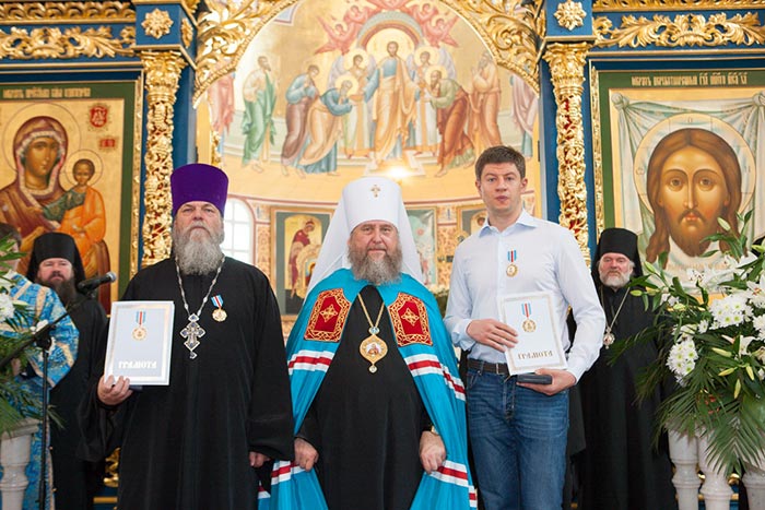 Такая же высокая церковная награда была вручена директору ТОО «Евразийская холдинговая компания» О.В. Власову за труды по строительству Духовно-культурного центра Митрополичьего округа имени равноапостольных Кирилла и Мефодия в Астане.