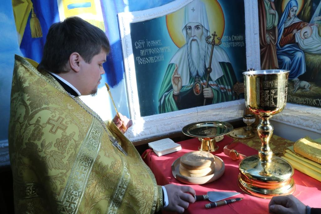 Перед причастием мирян проповедь произнес священник Андрей Свистунов.