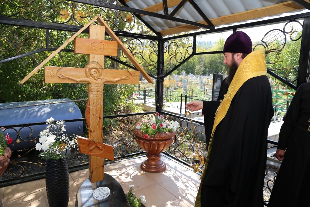 После Литургии епископ Амфилохий посетил городское кладбище, где на могиле усопшего настоятеля Свято-Даниловского храма священника Николая Давыдова († 16.10.2013 г.) совершил заупокойную литию. Так же Владыка осмотрел сень, которую к годовщине смерти настоятеля воздвигли над могилой.