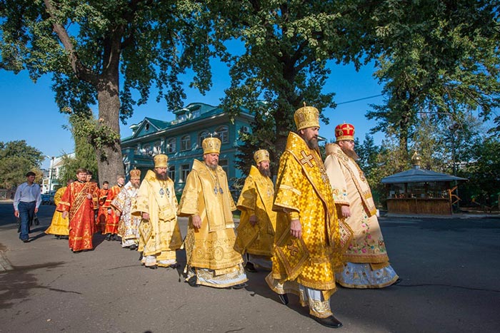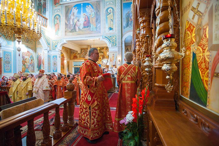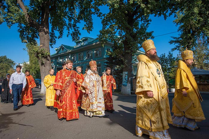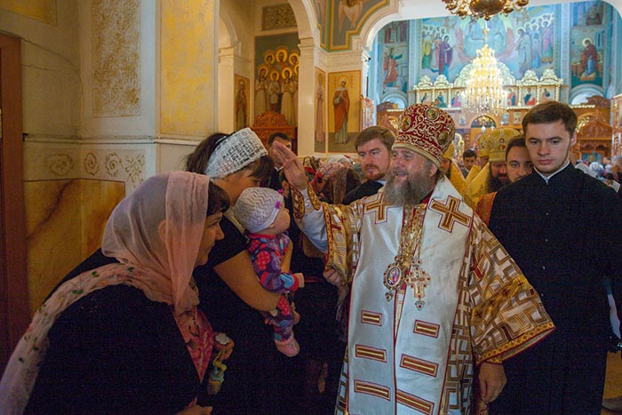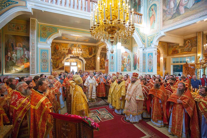 По окончании Литургии состоялось славление священномученику Пимену Верненскому и Собору новомучеников и исповедников Казахстанских.