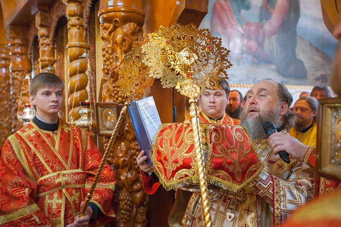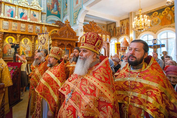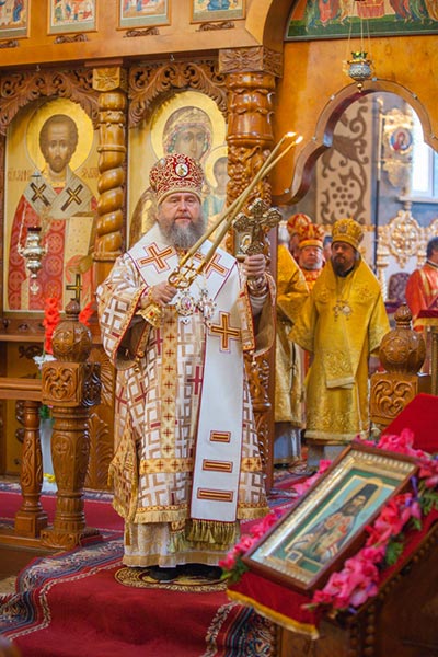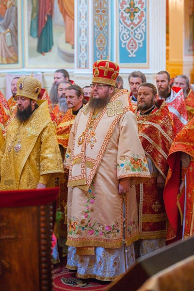 Затем митрополит Александр поздравил гостей-архипастырей, священнослужителей, монашествующих и мирян с праздником и обратился к собравшимся с проповедью о значении для исторических судеб Русской Православной Церкви подвига страдальцев Христовых ХХ века и о важности почитания новомучеников и исповедников в духовной жизни каждого верующего.