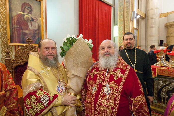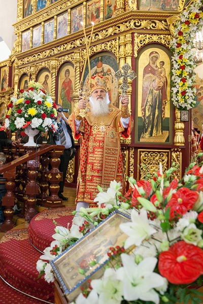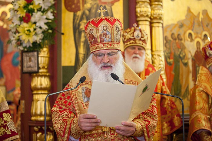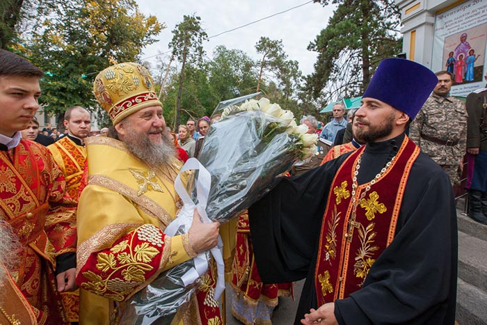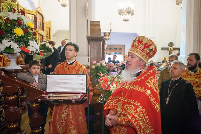По отпусте Литургии митрополит Александр обратился к собравшимся архипастырям, духовенству и верующим со словами поздравления с сугубыми торжествами – днем памяти небесных покровительниц Семиречья и 700-летием со дня рождения преподобного Сергия Радонежского.