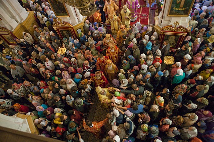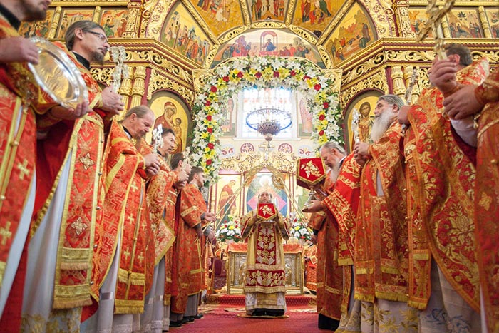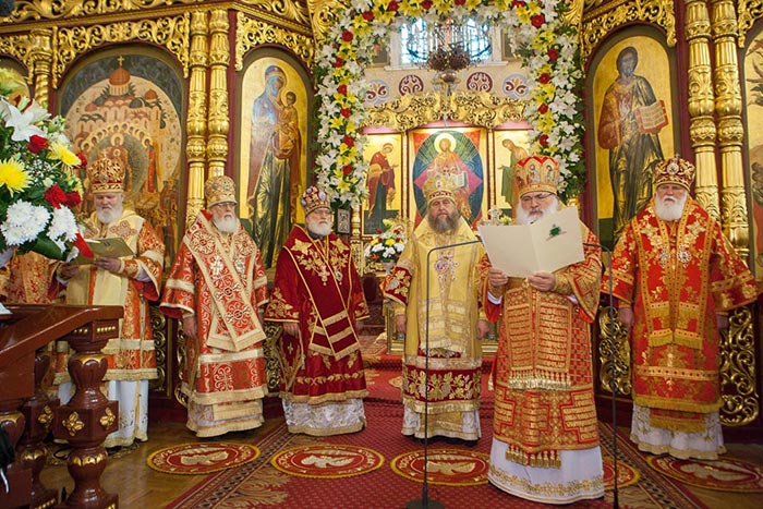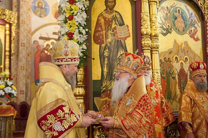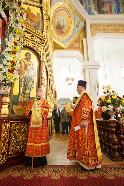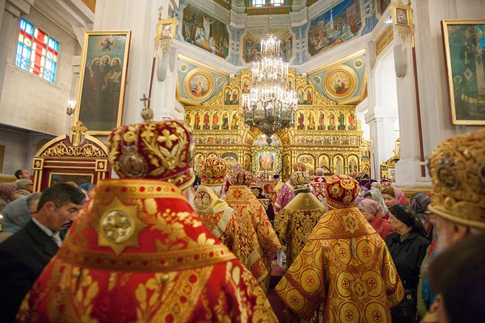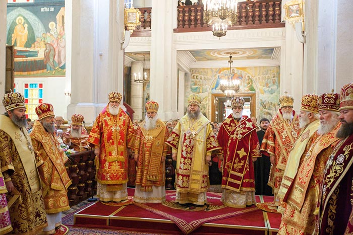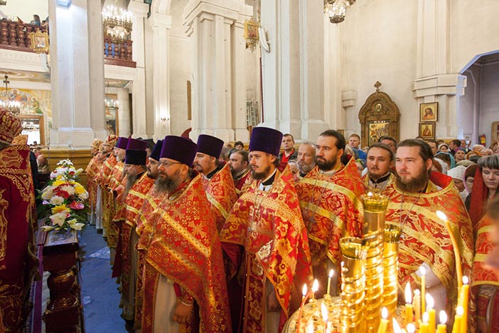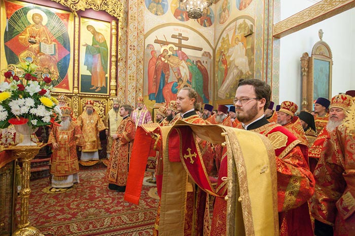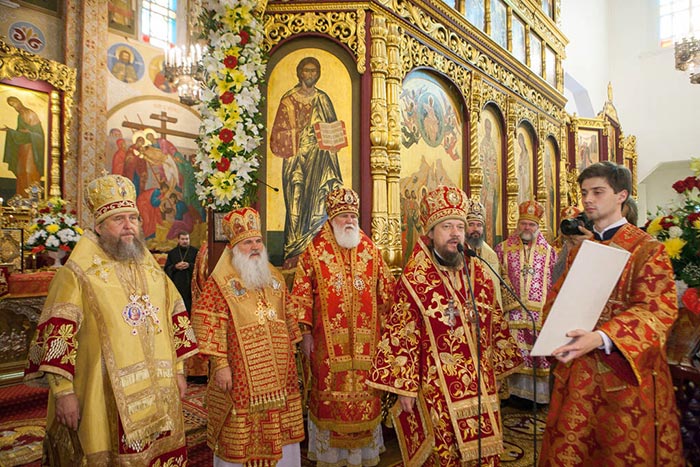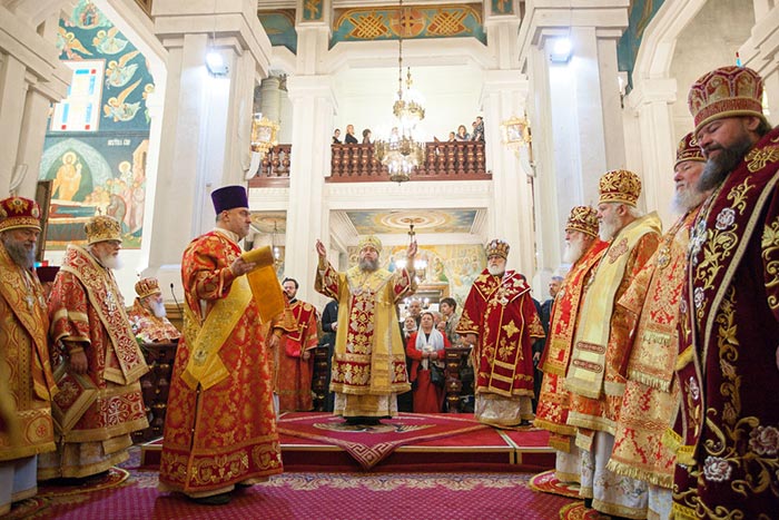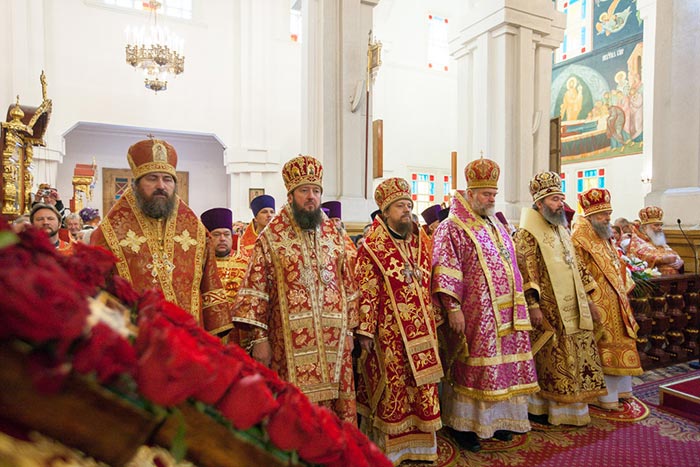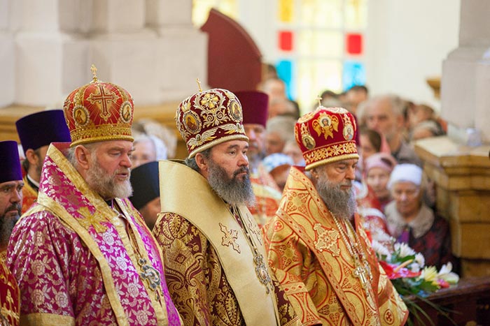 Литургию возглавили: Предстоятель Казахстанского Митрополичьего округа митрополит Астанайский и Казахстанский Александр, Глава Среднеазиатского Митрополичьего округа митрополит Ташкентский и Узбекистанский Викентий и Патриарший экзарх всея Белоруссии митрополит Минский и Слуцкий Павел.