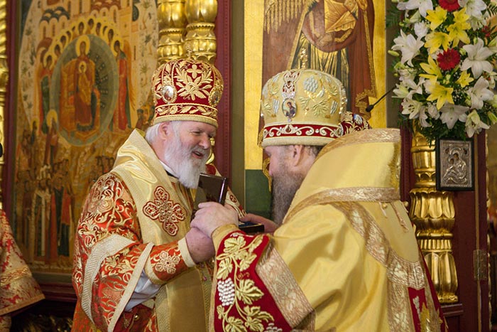 Участник архипастырской хиротонии митрополита Александра – митрополит Екатеринодарский и Кубанский Исидор, в память о 25-летии святительского служения через своего представителя передал Главе Казахстанского Митрополичьего округа панагию.