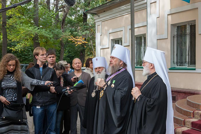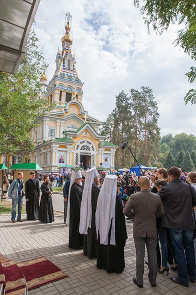 После богослужения состоялся выход к прессе. Митрополит Астанайский и Казахстанский Александр, митрополит Ташкентский и Узбекистанский Викентий и митрополит Минский и Слуцкий Павел ответили на вопросы республиканских и местных средств массовой информации. Брифинг был проведен при поддержке информационного агентства Интерфакс-Казахстан.