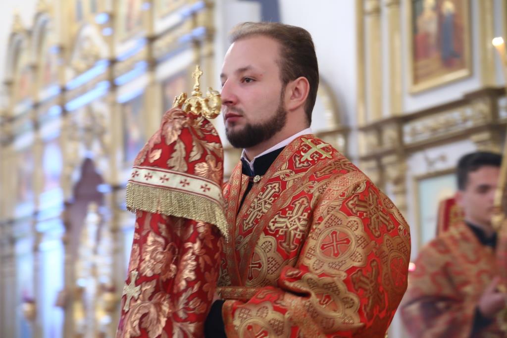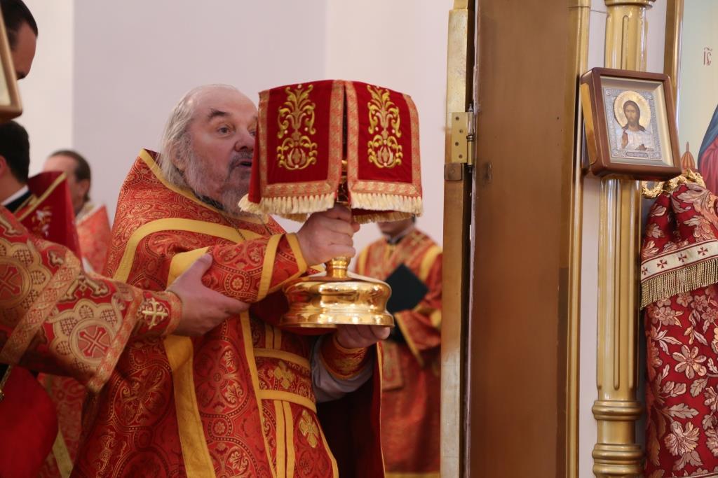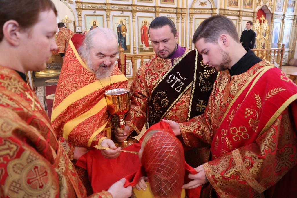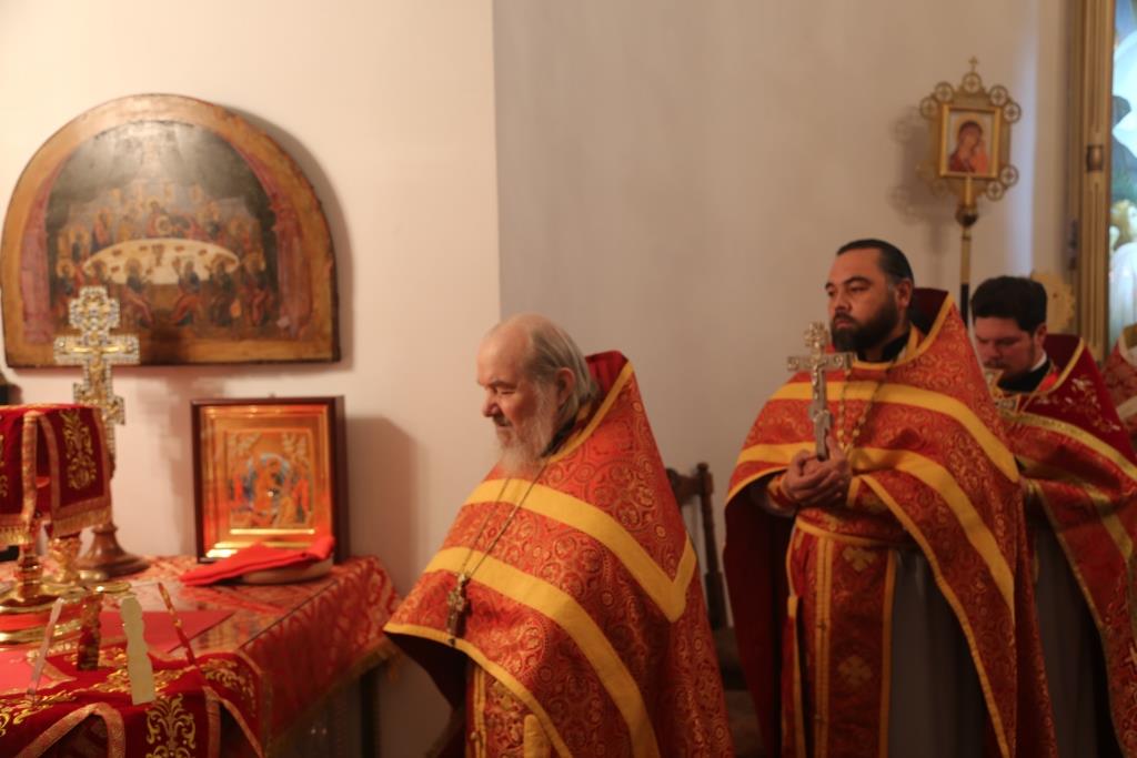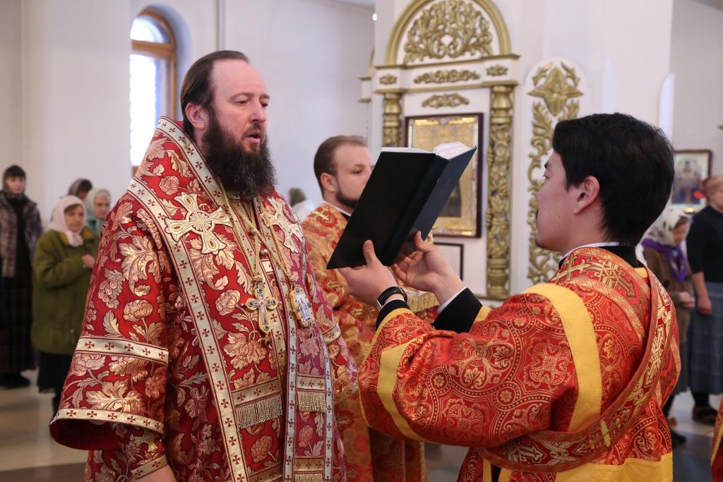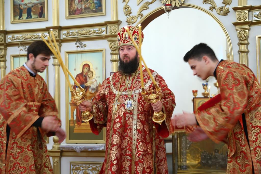 Преосвященному владыке сослужили: архимандрит Спиридон (Теплухин), иеромонах Севастиан (Андрющенко), иеромонах Силуан (Магилев), иерей Константин Дьяков, иерей Алексий Клепиков, иерей Евгений Хохряков; диаконский чин возглавил протодиакон Георгий Засыпкин.